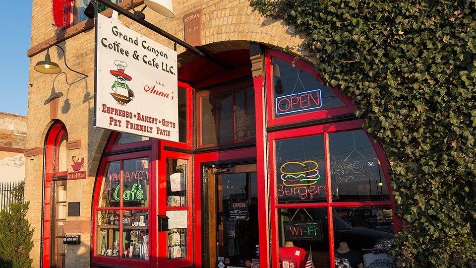 The laminated world map where countless tourists have marked their hometowns all over the globe also moved from Anna’s former location. It documents generations of travelers who know Anna’s Grand Canyon Coffee & Café spells good food in any language.