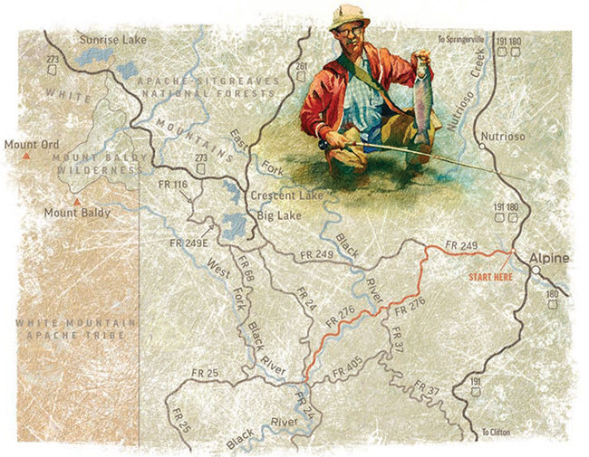 At Mile 16, the road briefly climbs away from the river before rejoining it, and it’s only a couple of miles from there to where FR 276 ends at an intersection with forest roads 24 and 25. You can take these roads to Big Lake, the river’s West Fork or other White Mountains destinations. But maybe, for a different perspective on the same area you just explored, you should go back the way you came. After all, most of those aspens won’t be around too long.