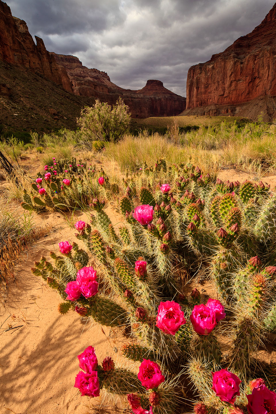 I pull out my rain shell and head downstream. River-smoothed rocks ranging in size from cobblestones to bowling balls pave the way, and for the next two hours, light rain falls off and on, but it’s nothing torrential. As if on cue, the clouds begin to lift as I see the green of the riverbank in the distance. The mouth of Nankoweap Canyon opens wide, and the trail leads to the south, around Nankoweap Butte. Cresting a steep rise and scanning the towering butte, I spot the granaries and am awash in a sense of completion and humility. The granaries blend into the cliff face high above the river, and I imagine farmers working cornfields below. Today, a millennium later, I’m the only human here.