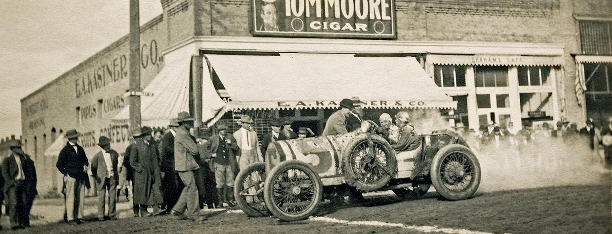 By the time the racers were approaching Prescott, spectators’ anticipation was growing. There were rumors about one of the racers having killed someone (this proved to be false) and another having been thrown from his car and crushed (that one was partly true). According to the 1969 Arizona Highways story, people lined the streets from the edge of town to the finish line to get a glimpse of the race leader. A story in the Prescott Courier noted, “As [Barney] Oldfield swooped over the hill and neared the scratch there was a mighty cheer from the throats of all who were in line.”