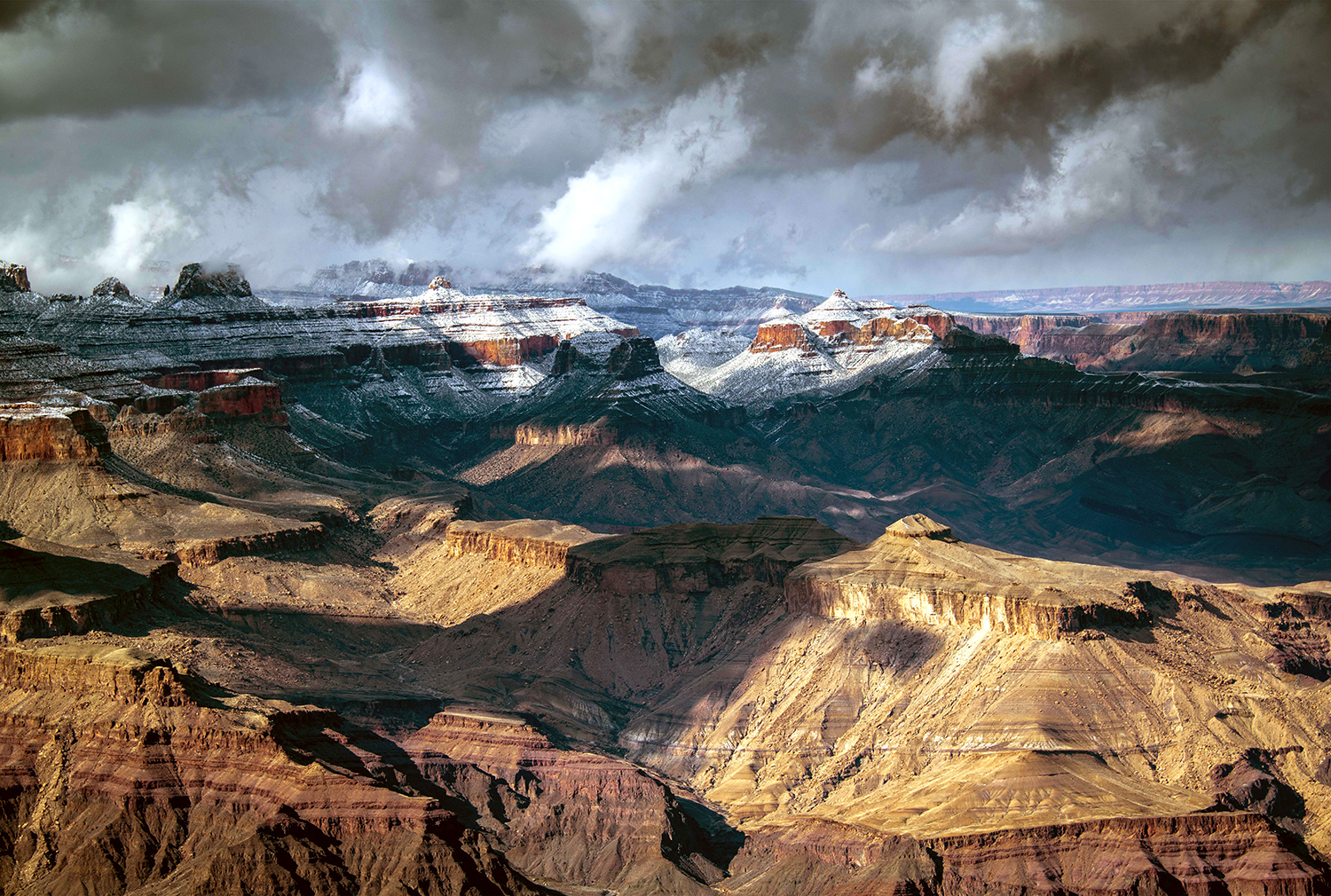 A winter storm dusts the Grand Canyon’s higher elevations with a layer of white.