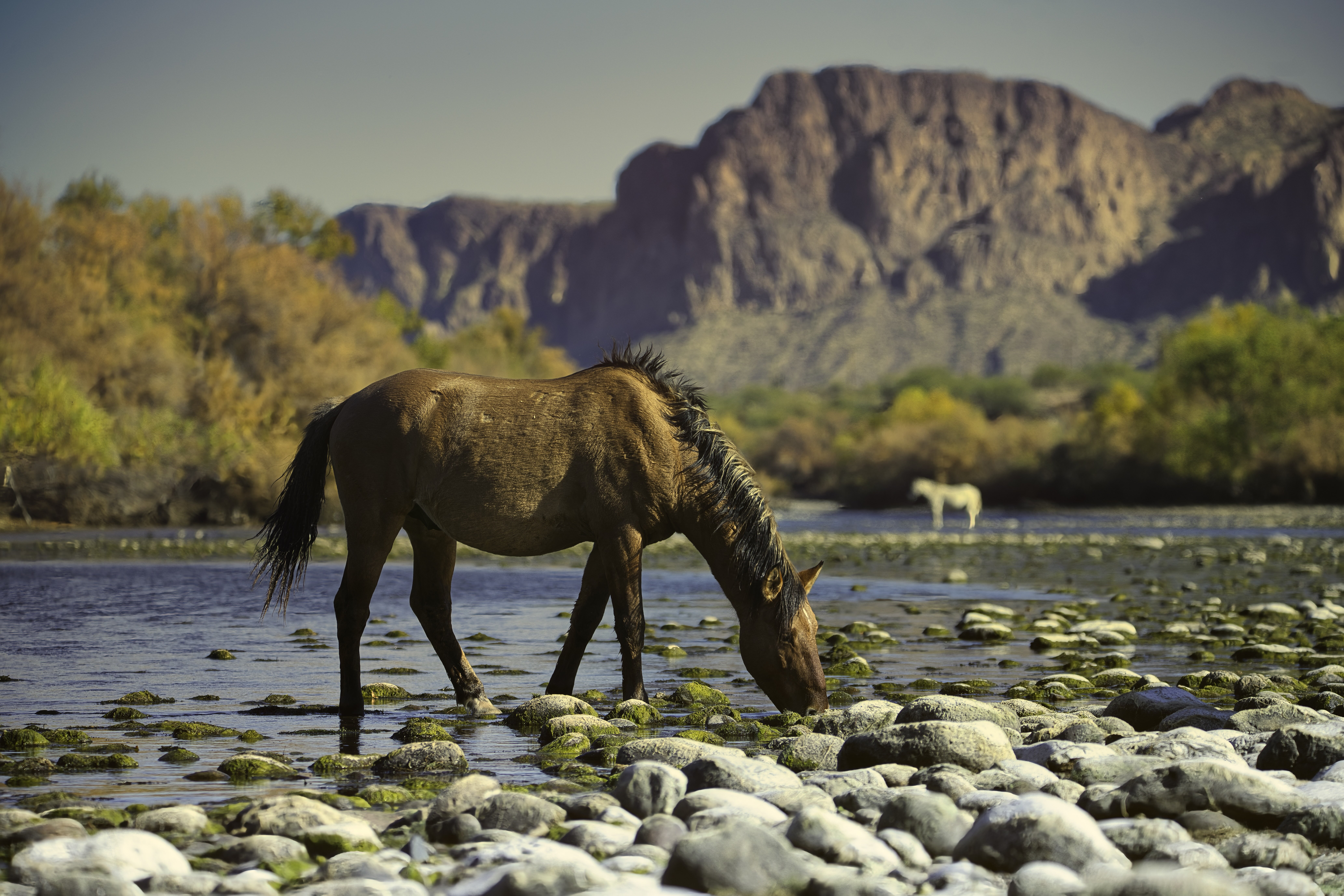 While sitting down river this beautiful stallion came out to eat some eel grass that has been left over in the river.