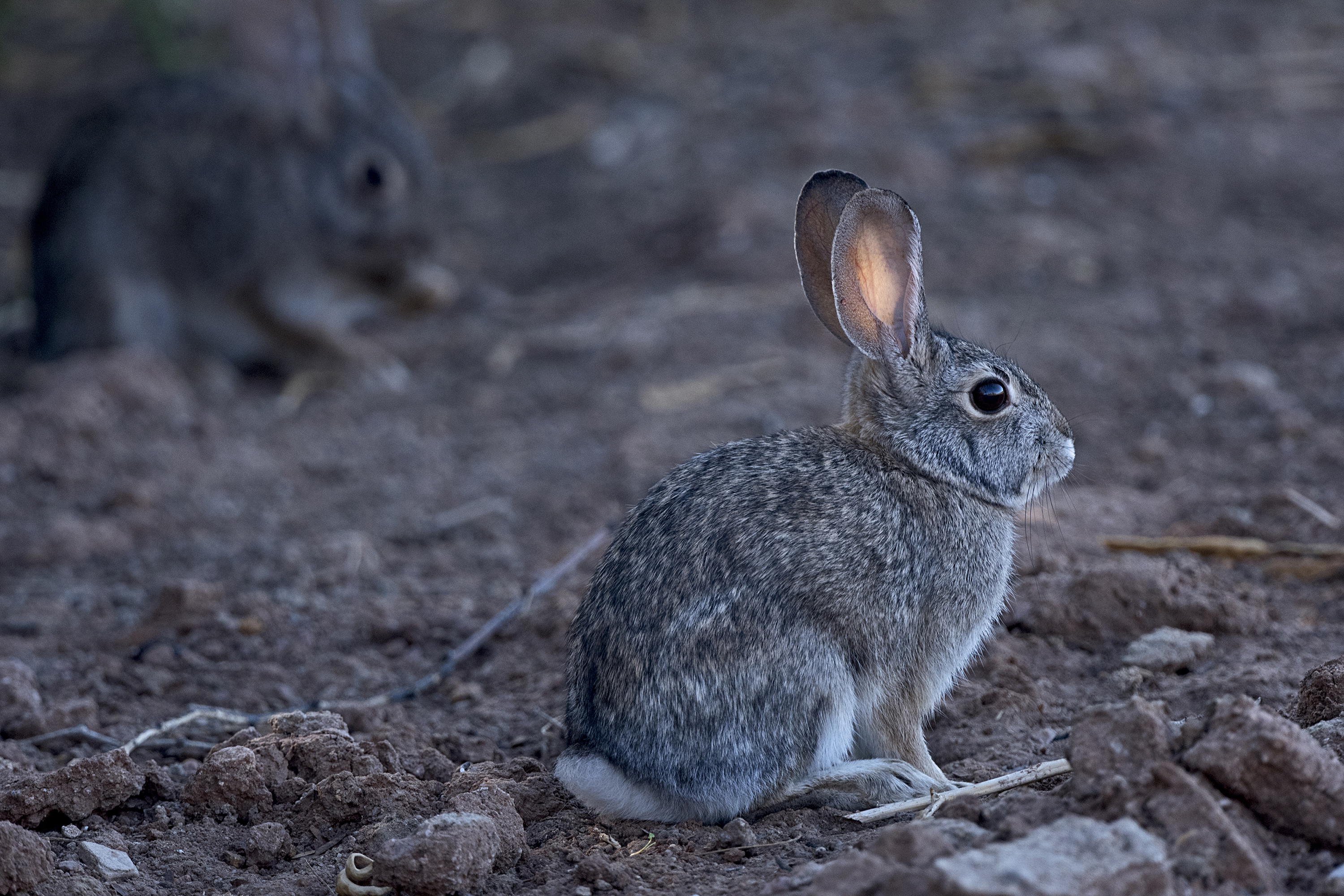 Wild Bunny sitting inside a wooded area enjoying mornng sunlight.