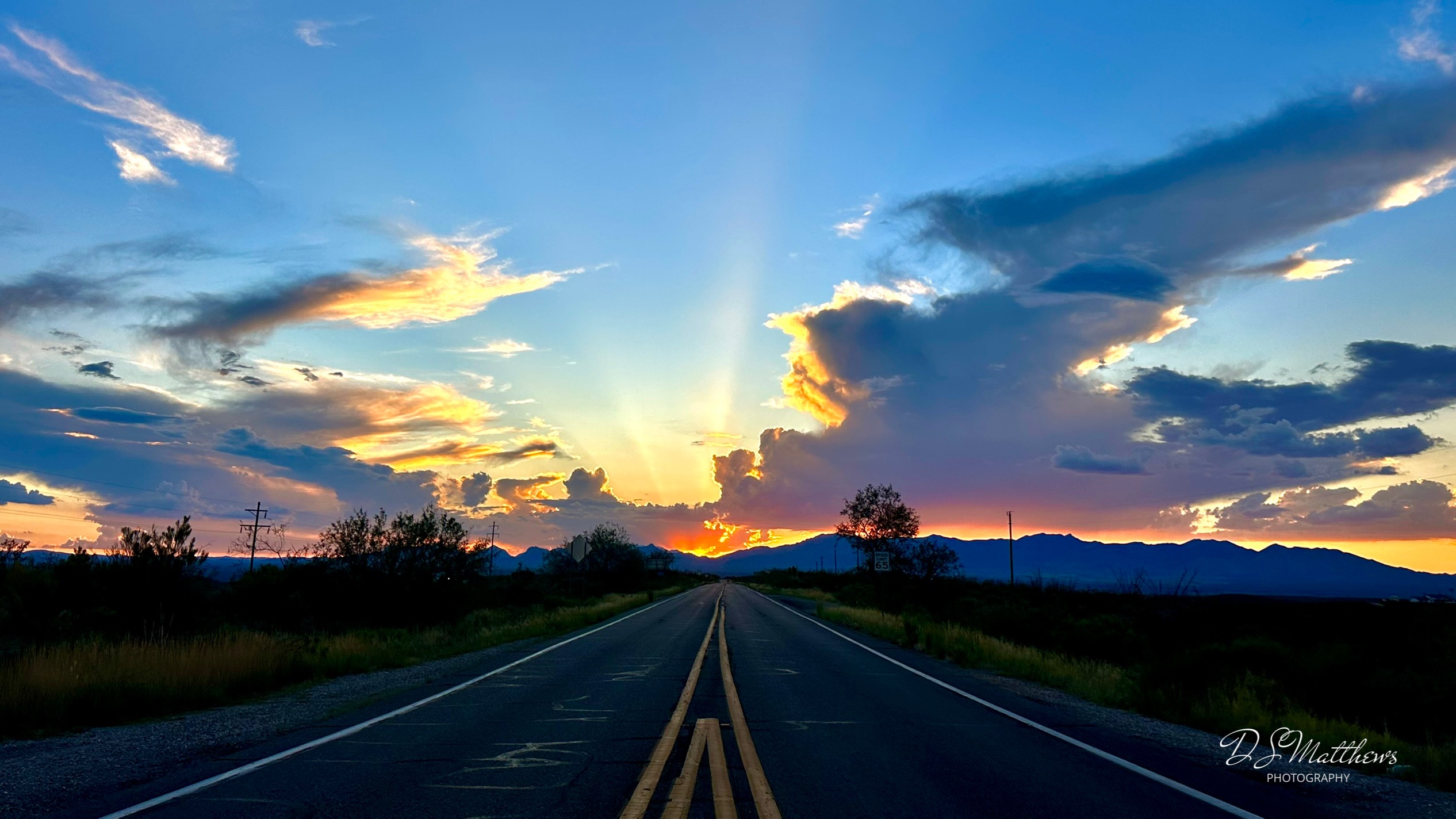 Looking west at the setting sun on Hwy 82 to Tombstone, Arizona.
