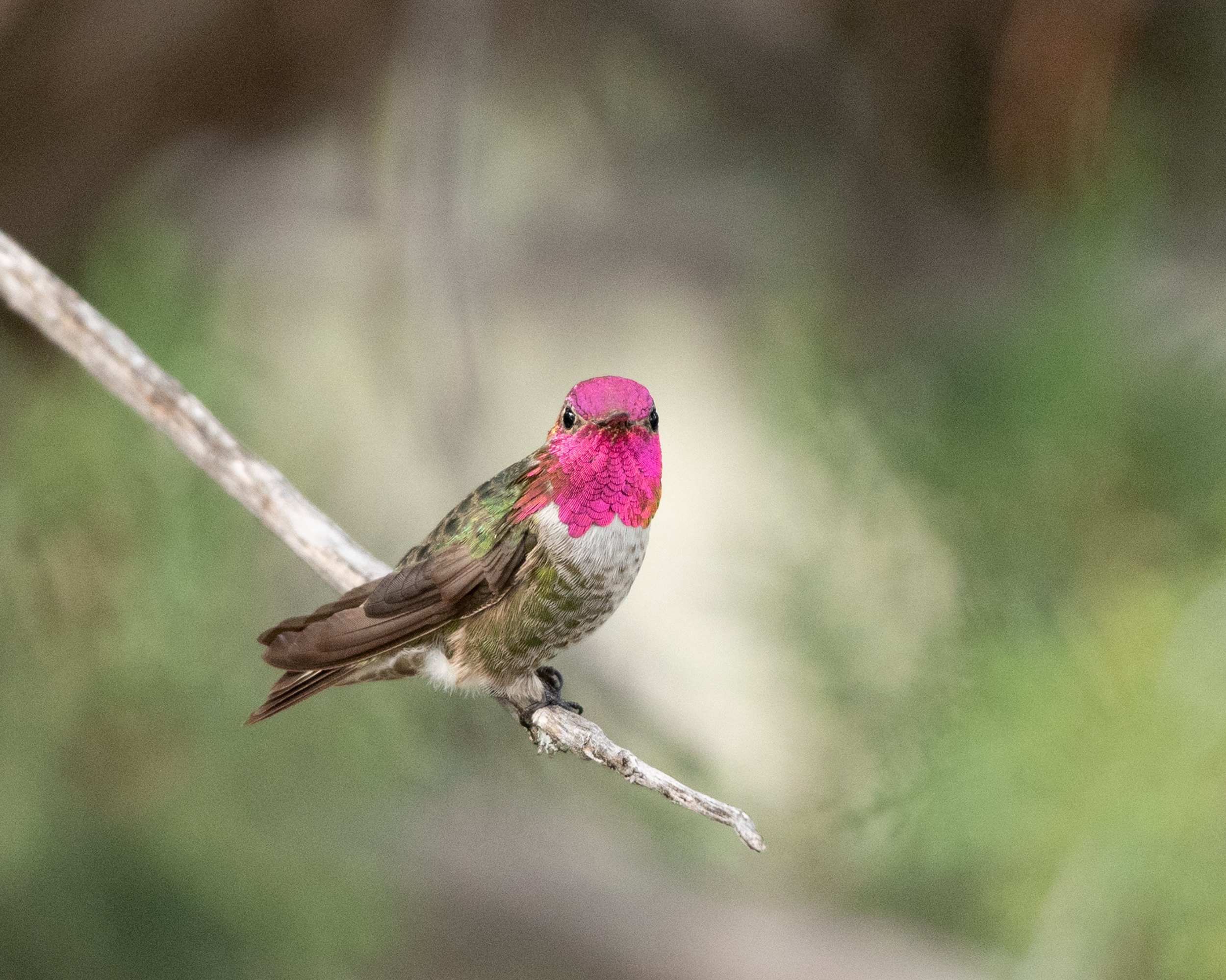 Anna’s Hummingbird in a posing in a juniper tree in Chino Valley AZ