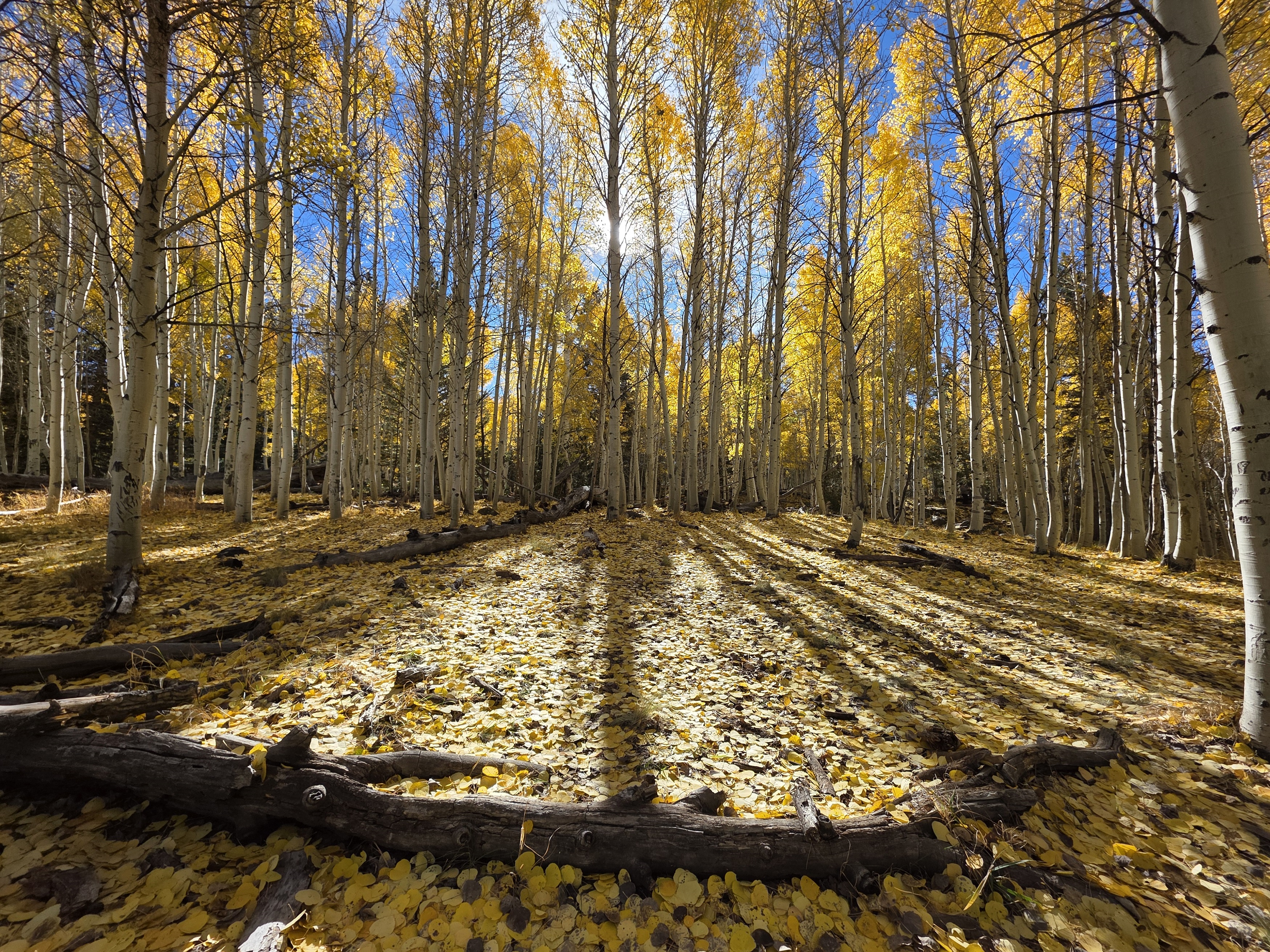 This photo captures a quiet magic that comes with fall. Sunlight in the Aspens on Snowbowl, Flagstaff