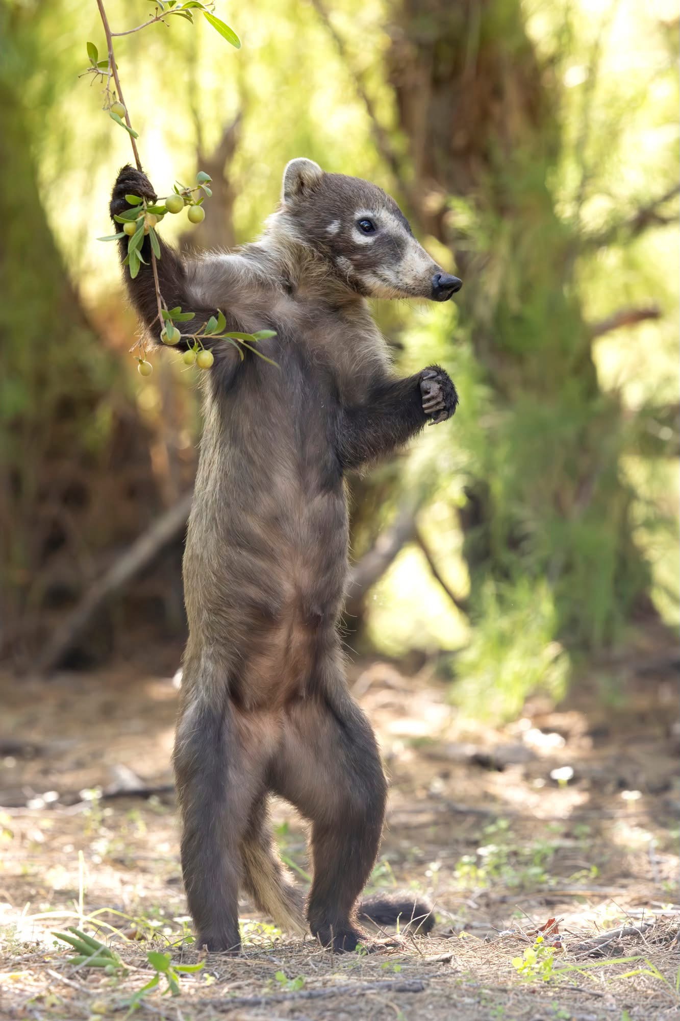 Adult female white nosed coati. Coati troops are a matriarchal group with several female adults, juveniles and kits. Adult males are solitary and only come around during mating season.