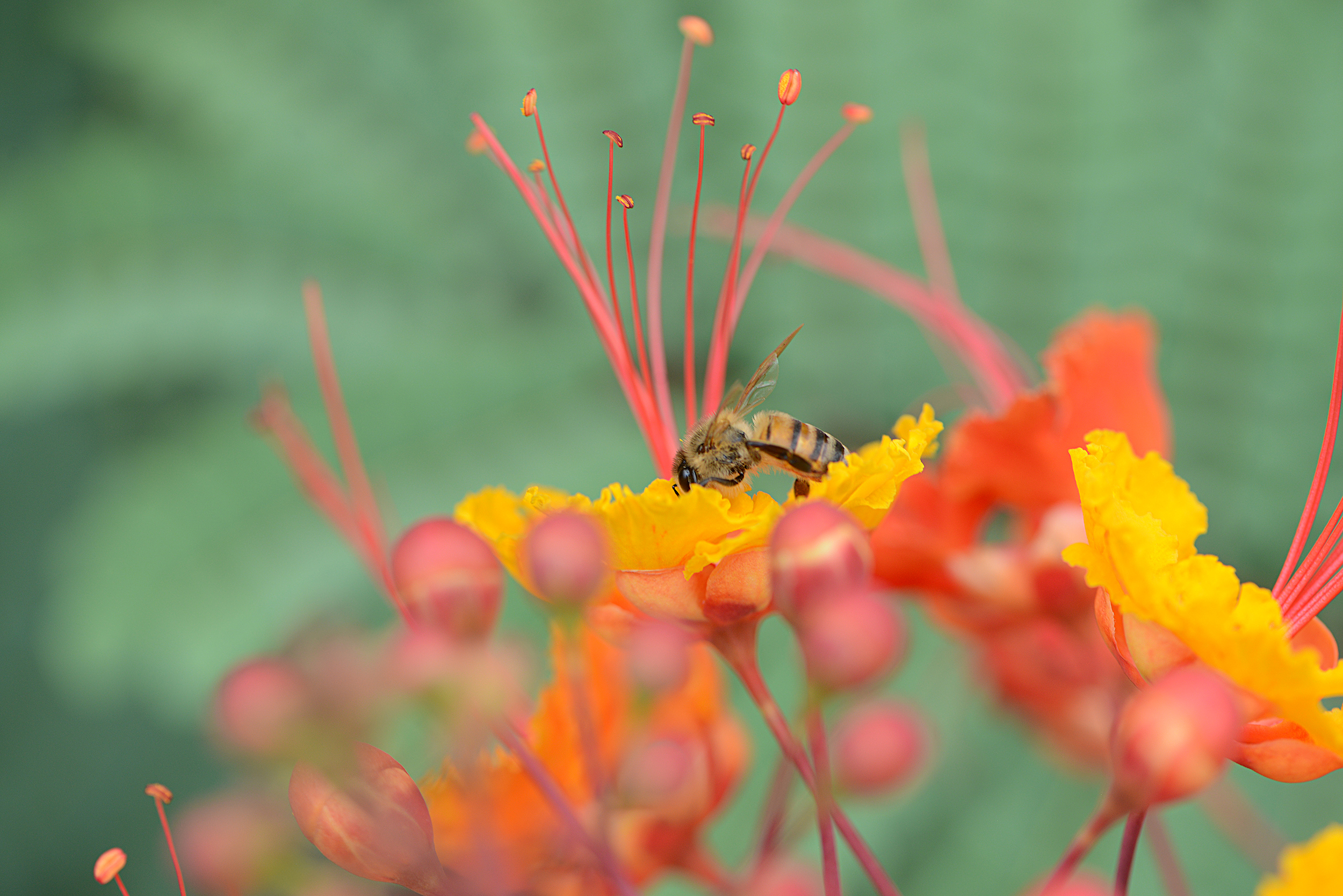 Bee on Mexican Bird of Paradise Blossoms