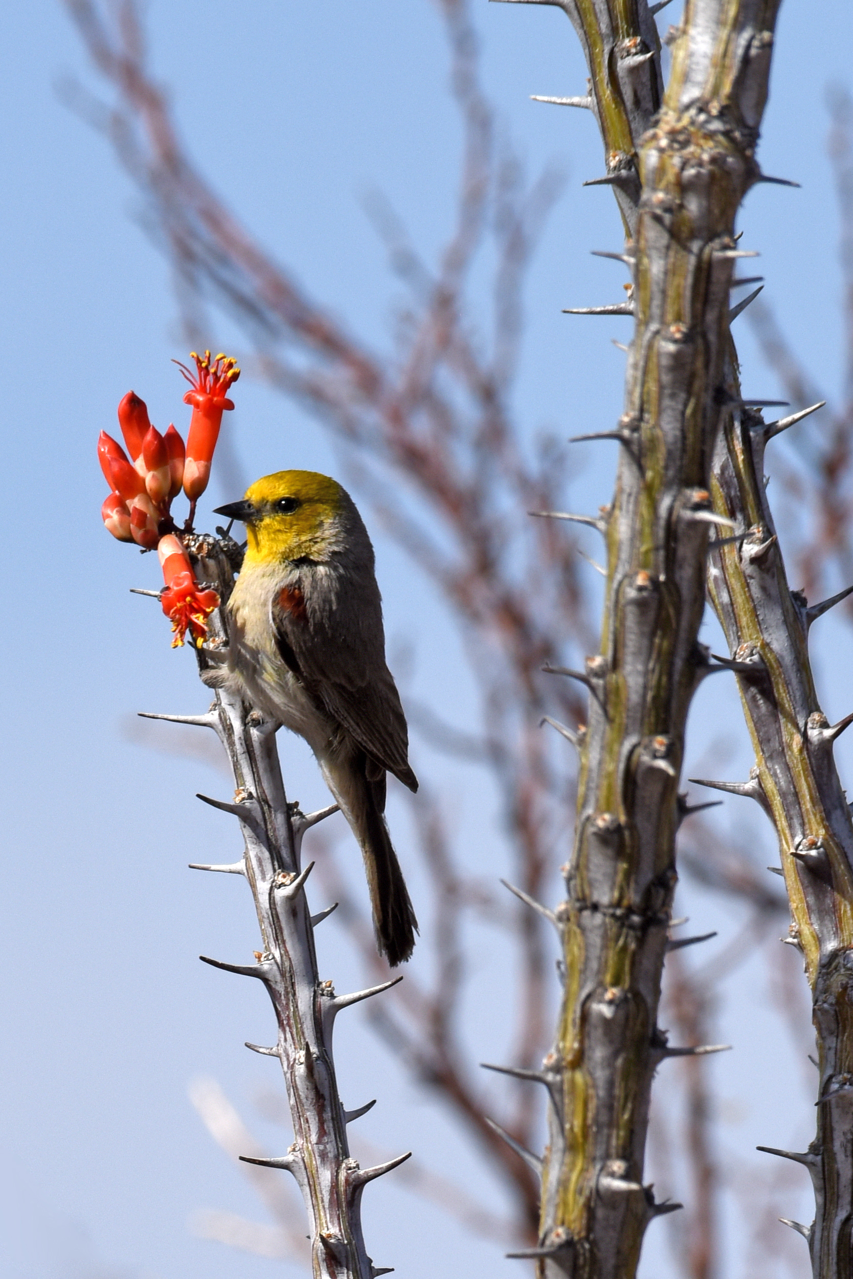 Verdin with Ocotillo