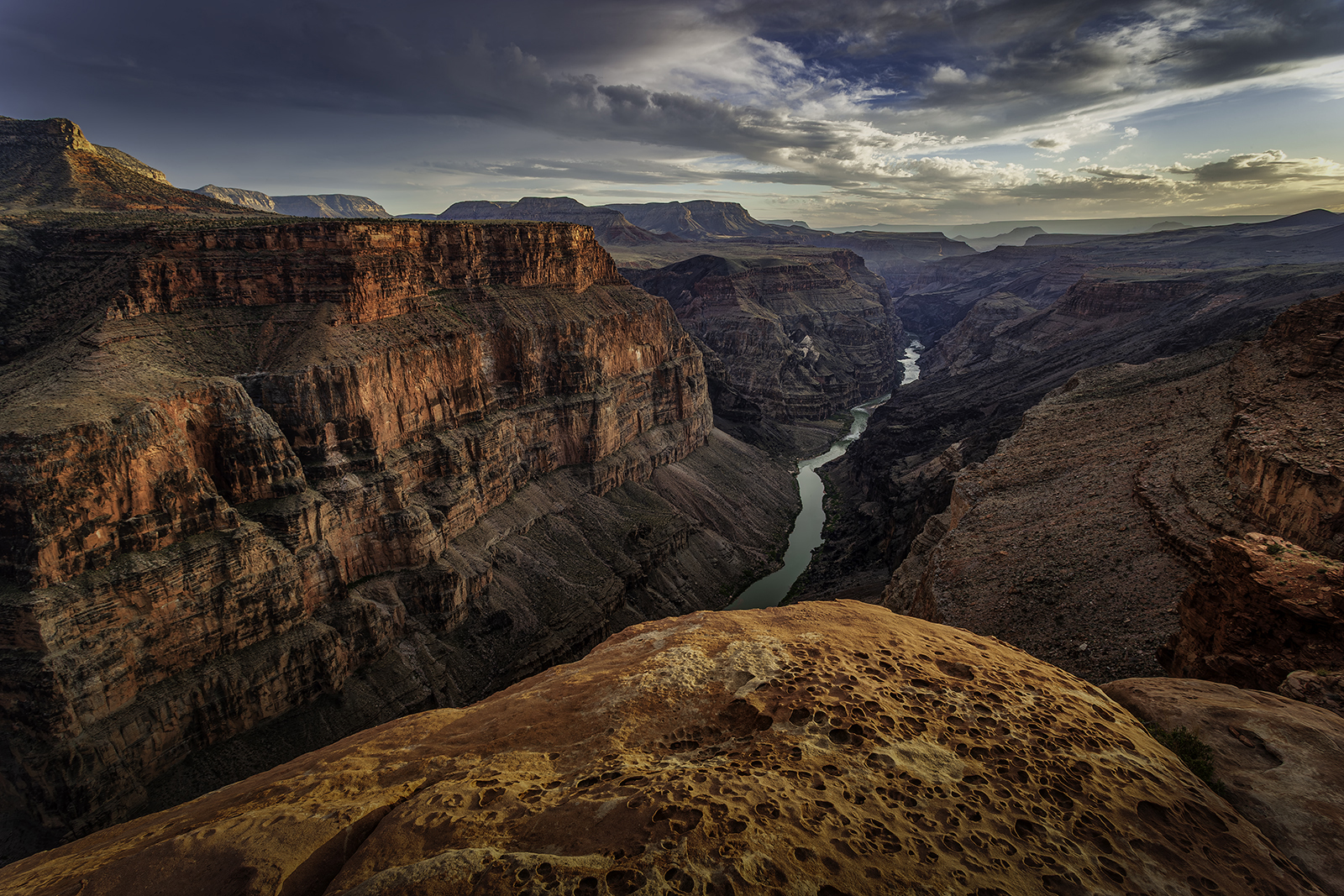 An isolated window of light amid a winter storm within the Grand Canyon.
