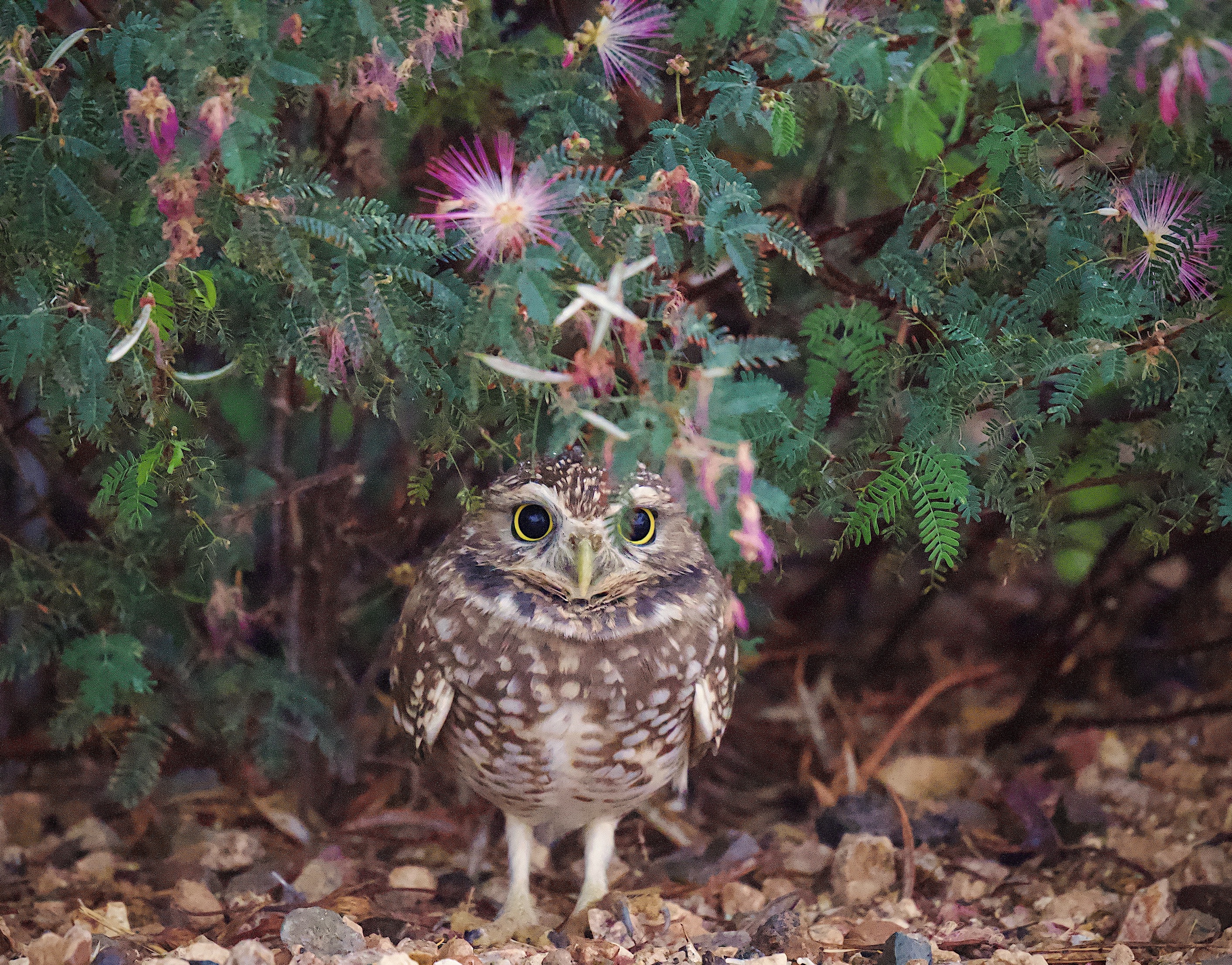This Burrowing Owl sought out some Shelter under a Fairy Duster Bush