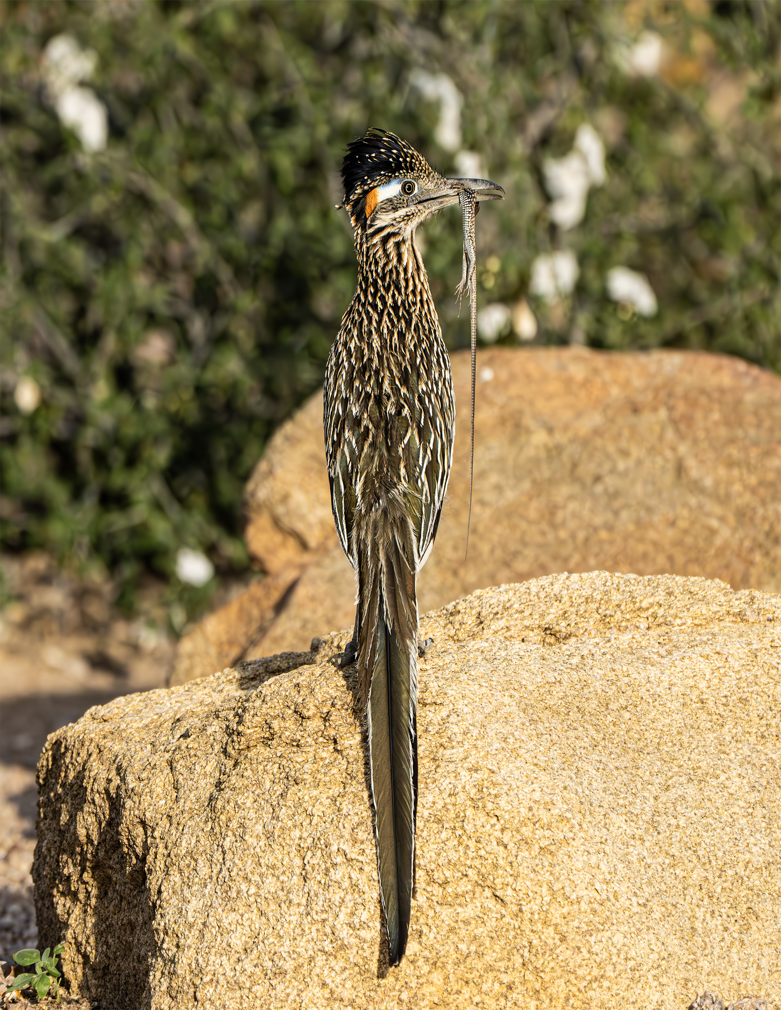 Greater Roadrunner (Geococcyx californianus) with "fresh catch of the day", which appears to be an unfortunate whiptail lizard. This bird paused briefly allowing me to get the shot, then was gone.,