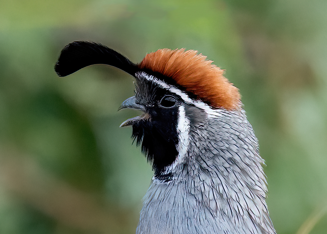 Quail portrait: Gambel's Quail are gregarious birds of the desert Southwest, where coveys gather along brushy washes and cactus-studded arroyos to feed. Gorgeous colors and so fun to watch.