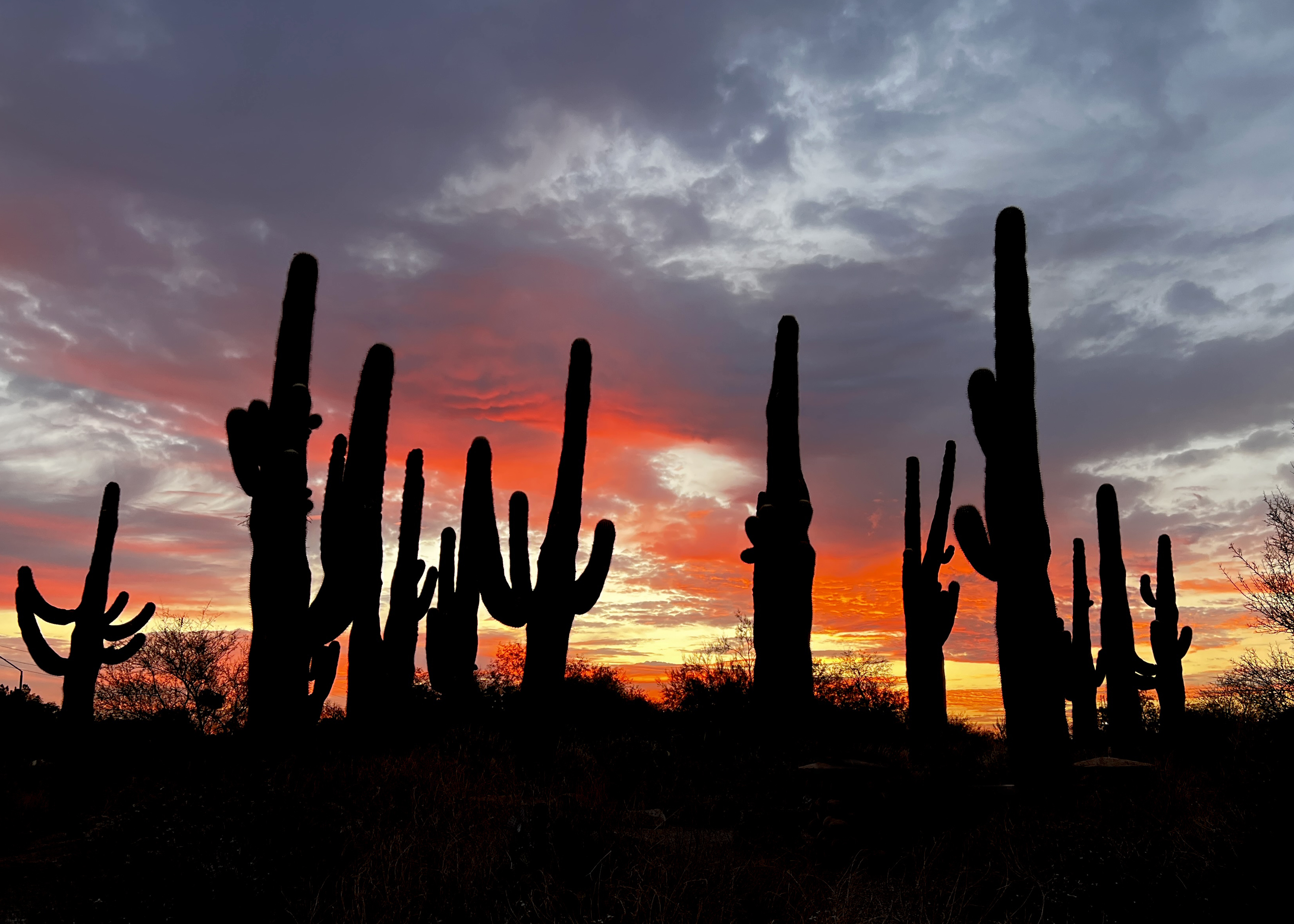 Beautiful Arizona Saguaro Cactus Morning Silhouette.