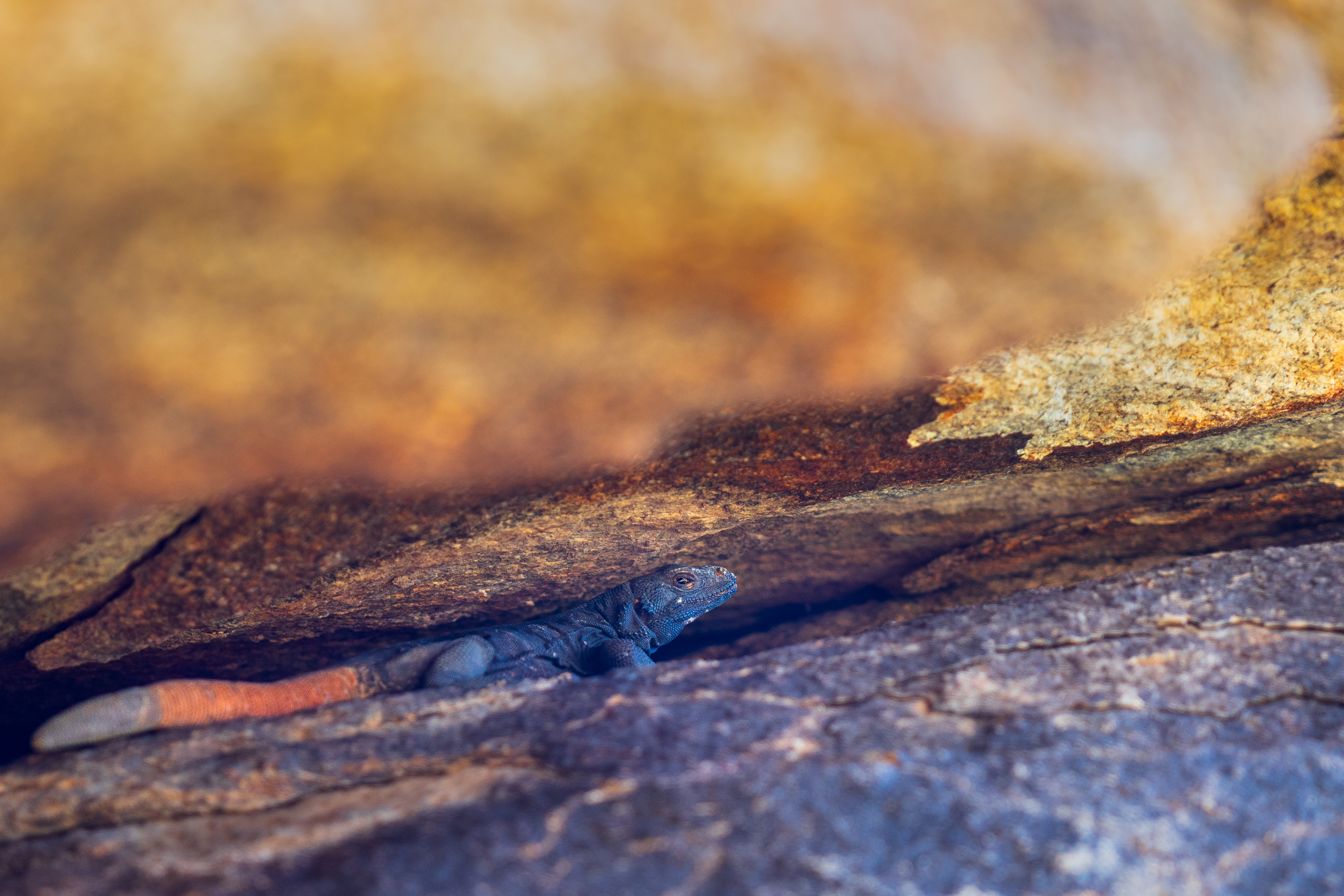A male carrot-tailed chuckwalla takes shelter from the daytime heat. While this lizard is common in Arizona to spot one with an orange tail one must search specifically near South Mountain in Phoenix.
