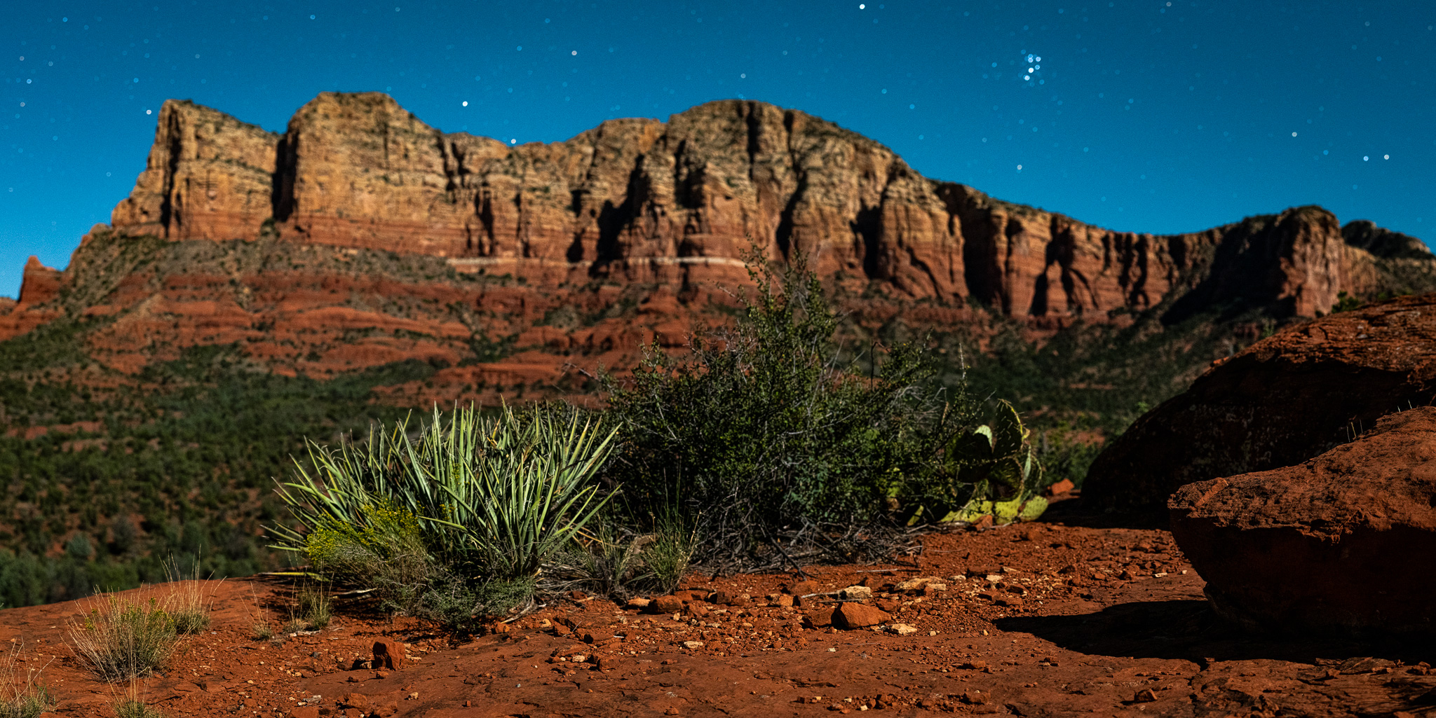 Venus rises above Bear Mountain in Sedona in a long exposure from inside Robber's Roost.
