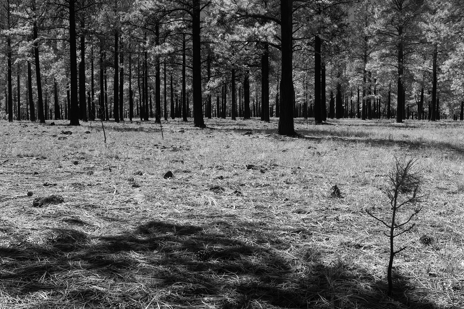 This was taken in October in the White Mountains. It was in the area where the Greer Fire had burned 20,308 acres. The Pines stood tall, the bark black. A new tree was already growing.