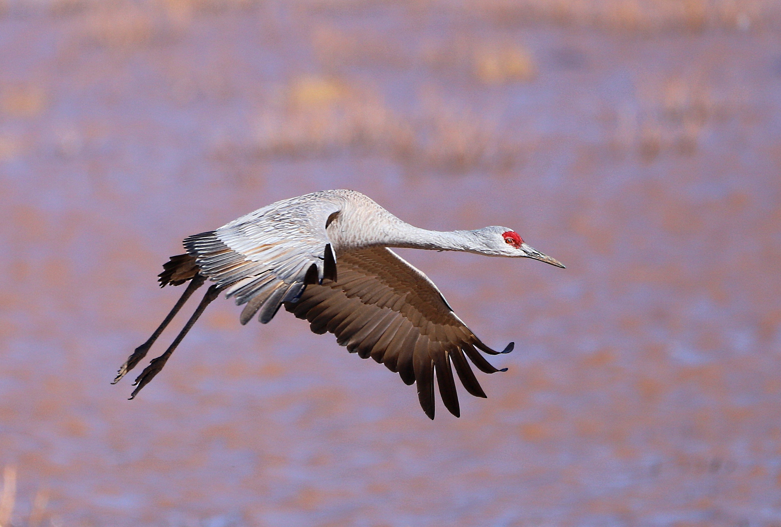 A TRIO formation of SANDHILL Cranes does a fly by .