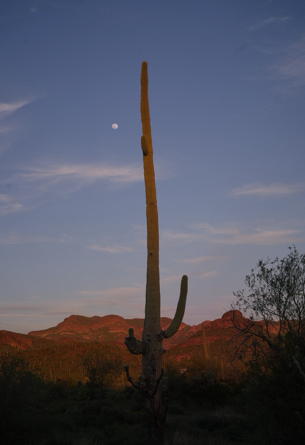 I went on a search in the superstition mountain area to find what I deemed as “the tallest cactus”. Through many weeks and camping trips, I came across this majestic beauty, accompanied by the moon.