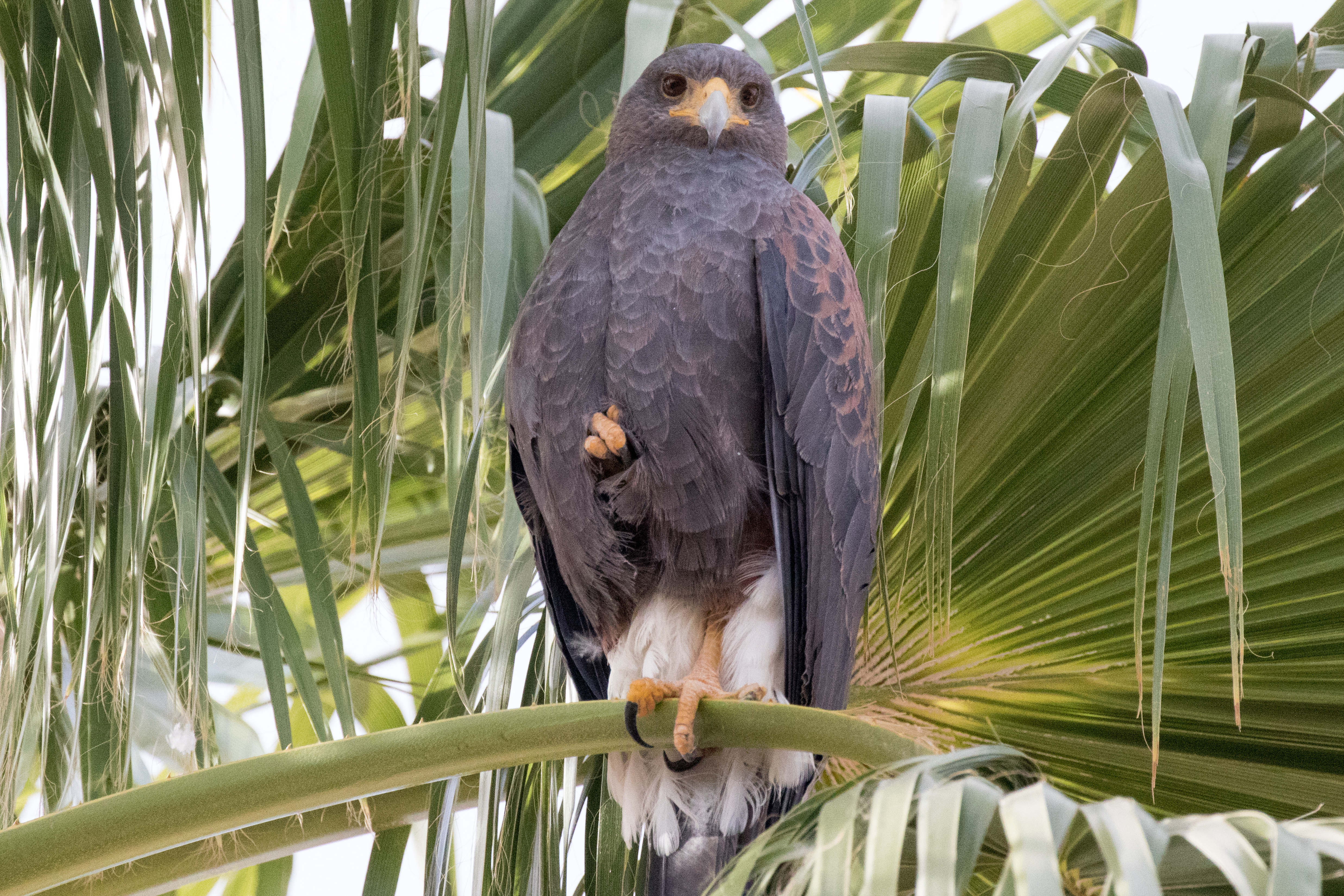 A Harris's Hawk in a Palm Tree