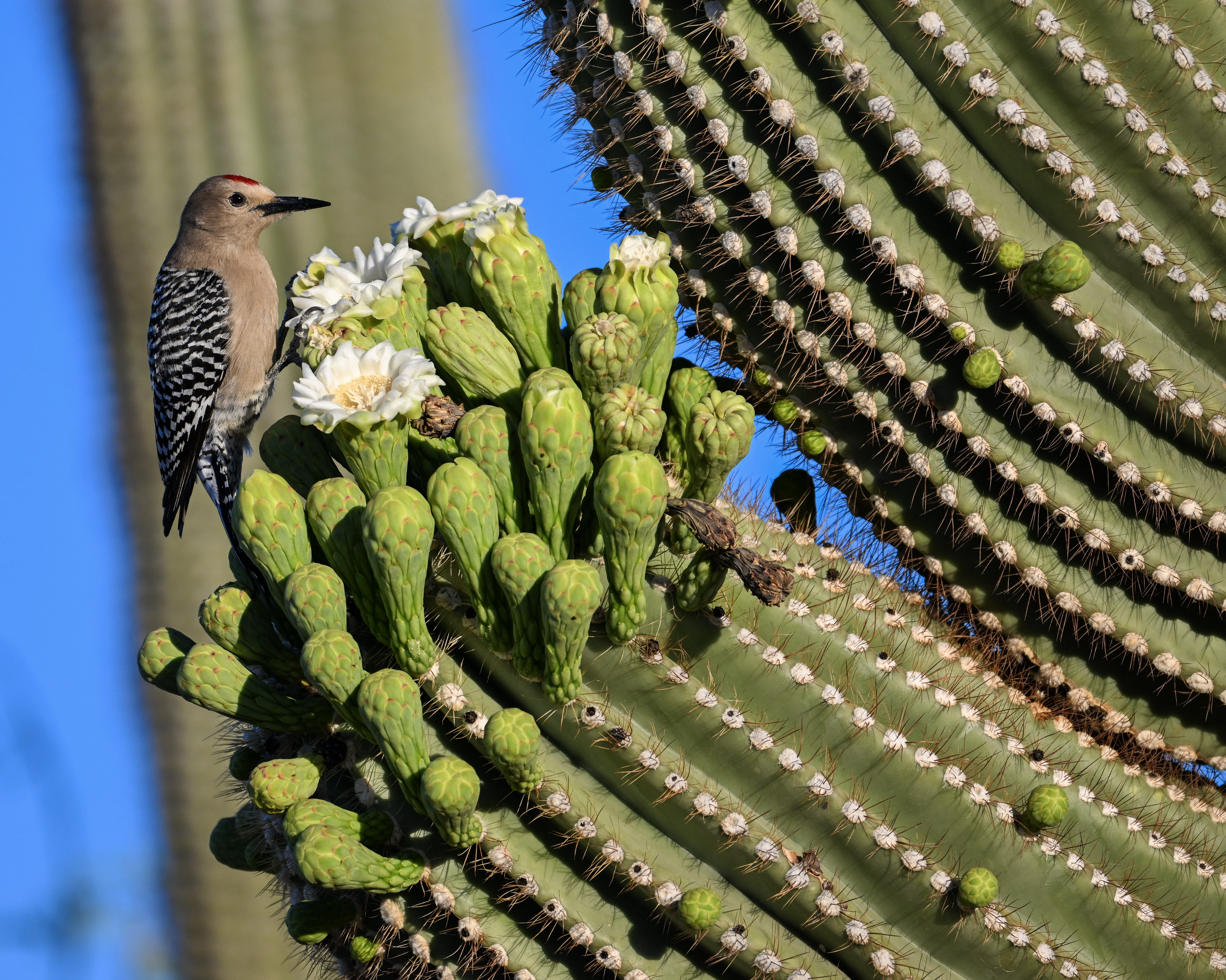 Gila Woodpecker feeding on Saguaro blossoms in Sabino Canyon