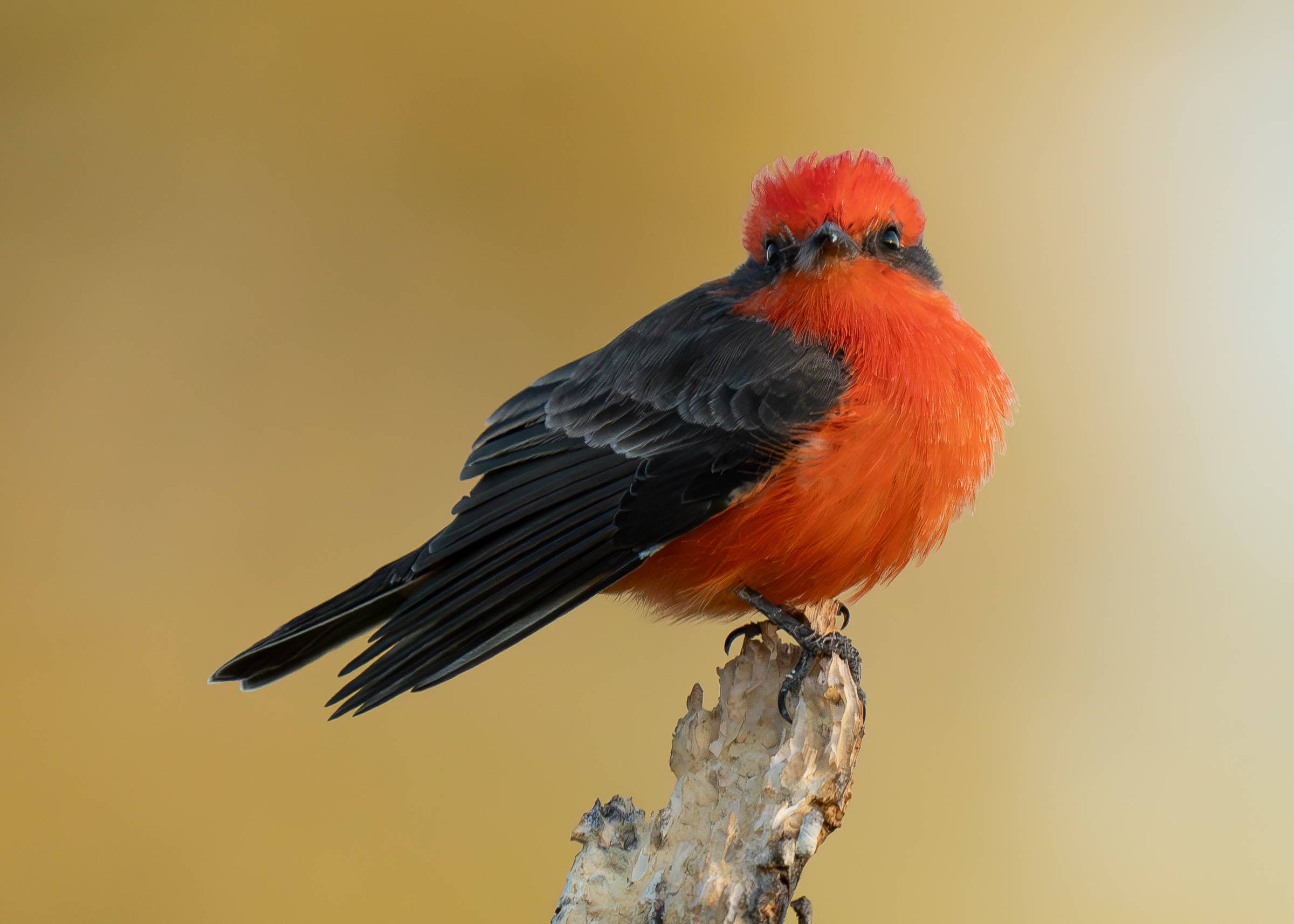 A vermilion flycatcher perched and looking for its next meal