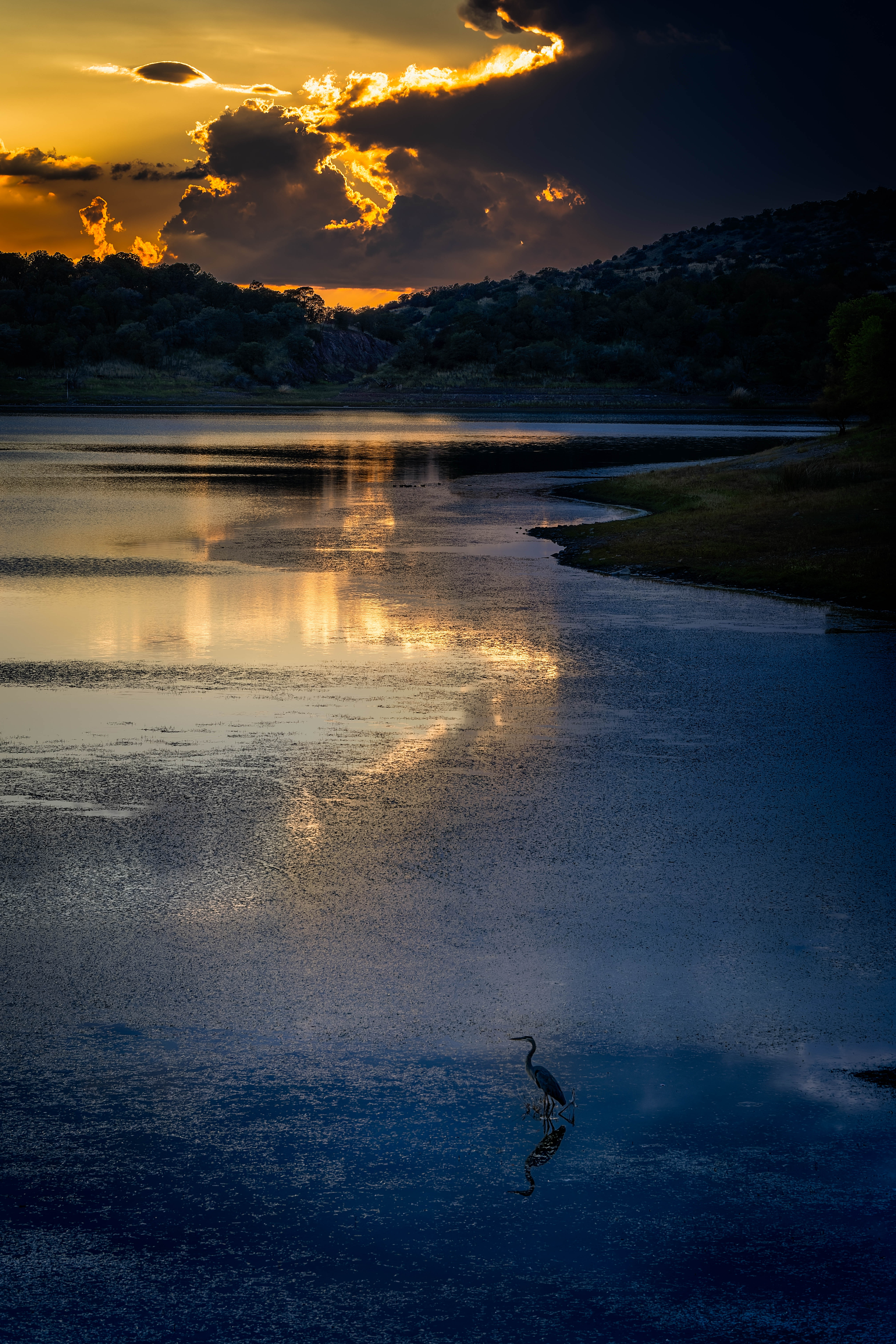 A Heron watching the setting sun on Parker Canyon Lake.