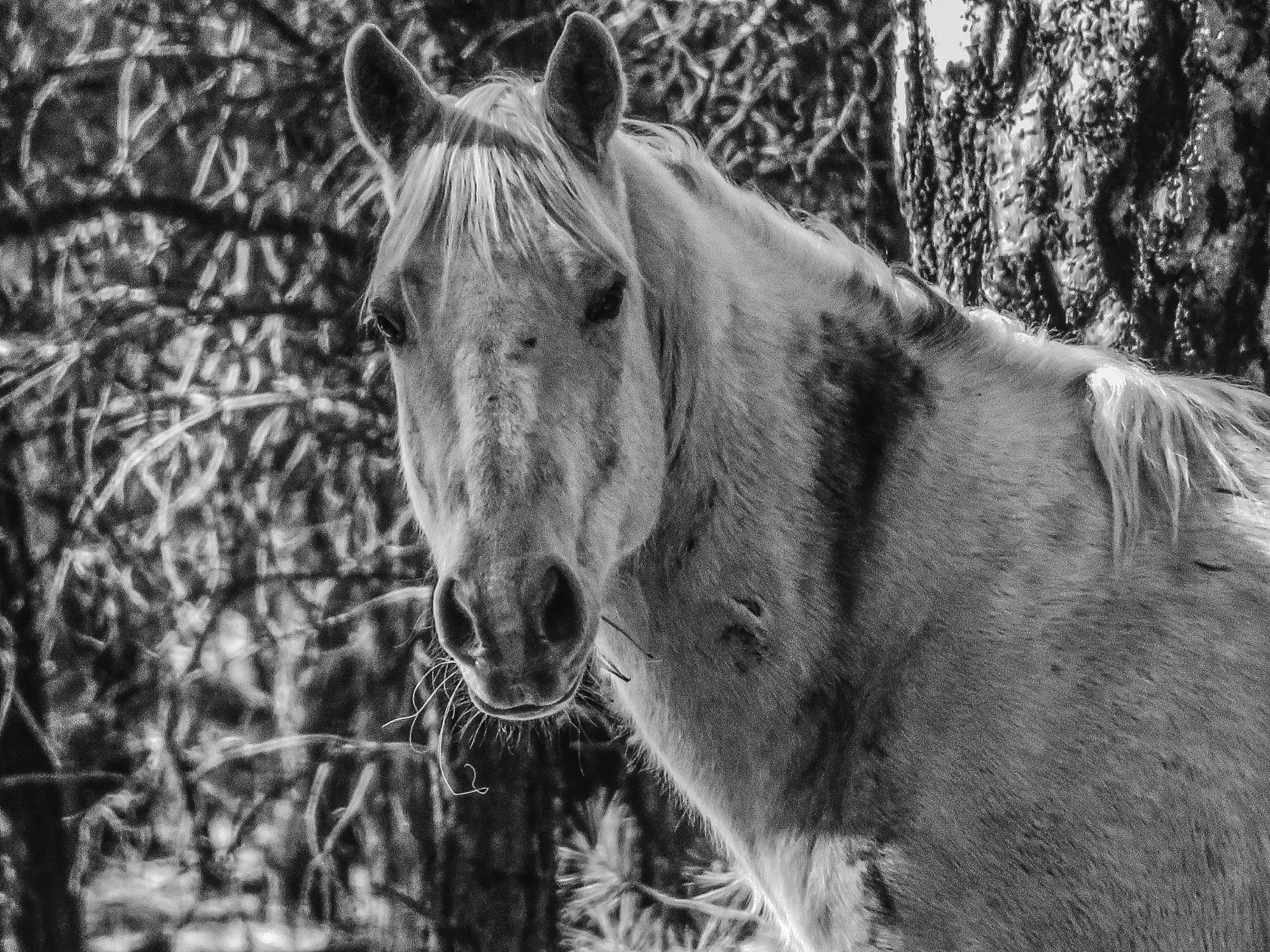 A wild horse peaking through