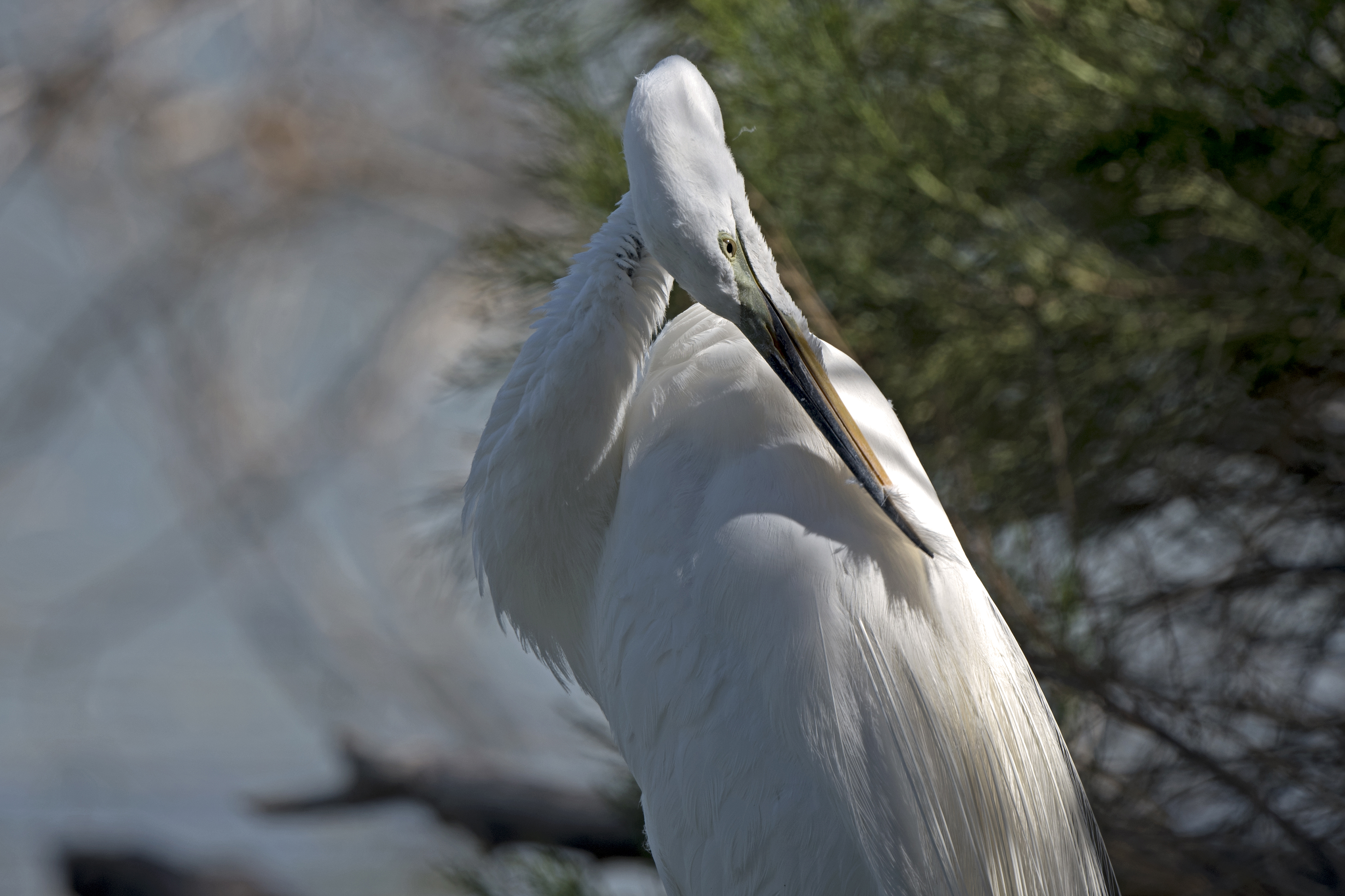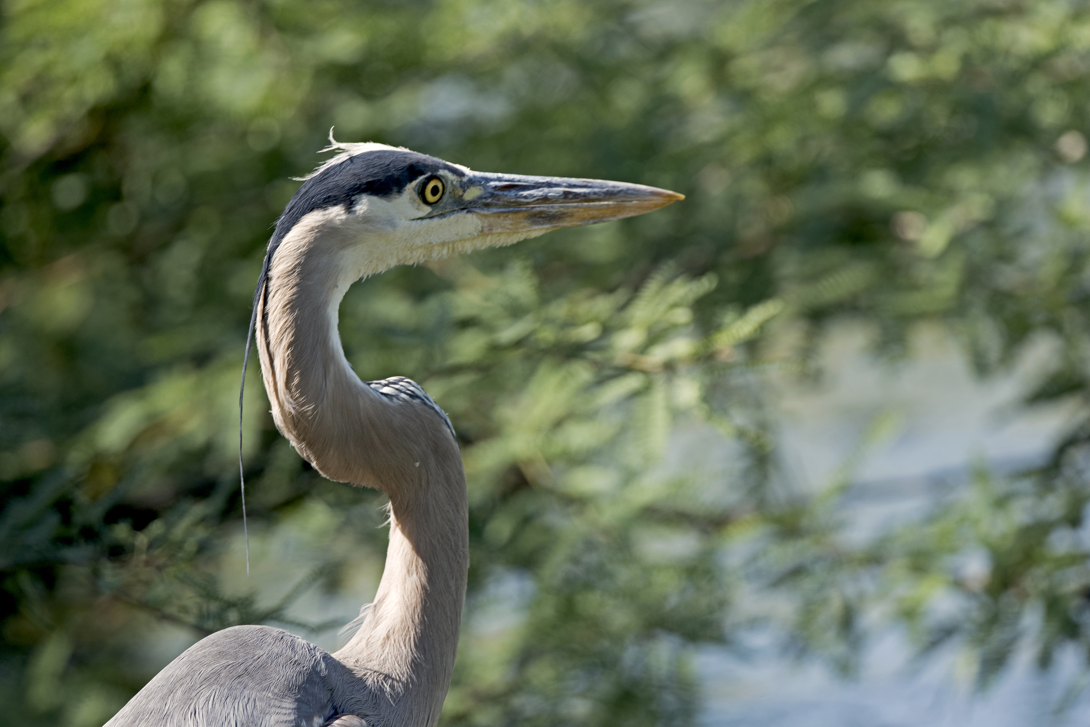 Great Blue Heron in full attention to track a fish inside Riparian Preserve Gilbert