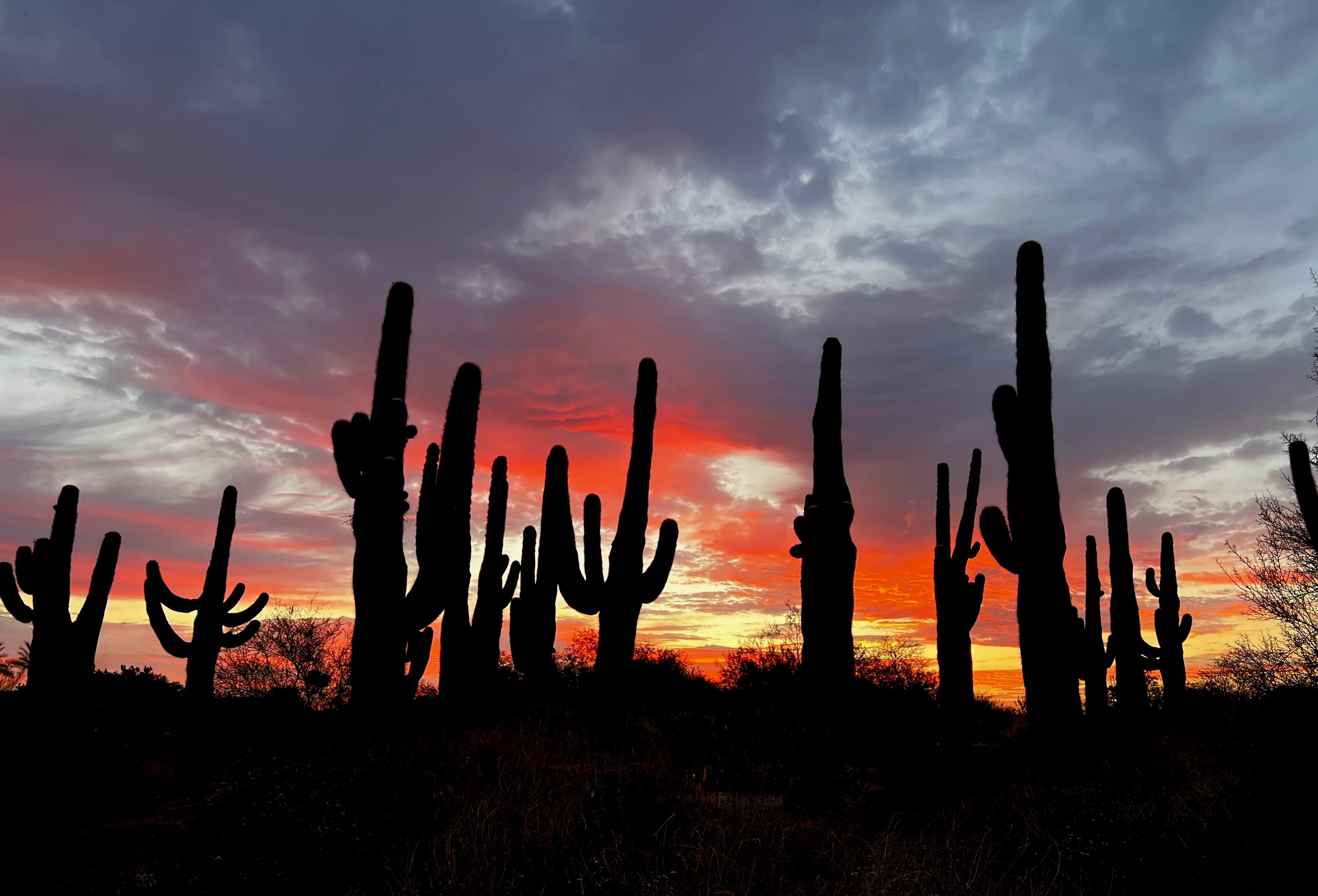 The setting of the day with Red Mountain/Saguaro cactus silhouette.