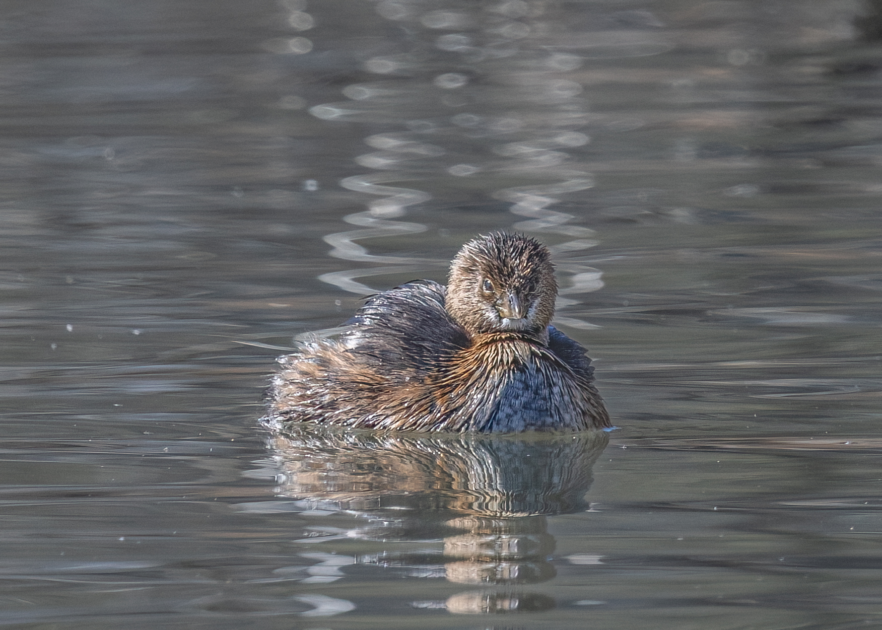 A pied-billed grebe was enjoying the calm of the morning on Roper Lake.