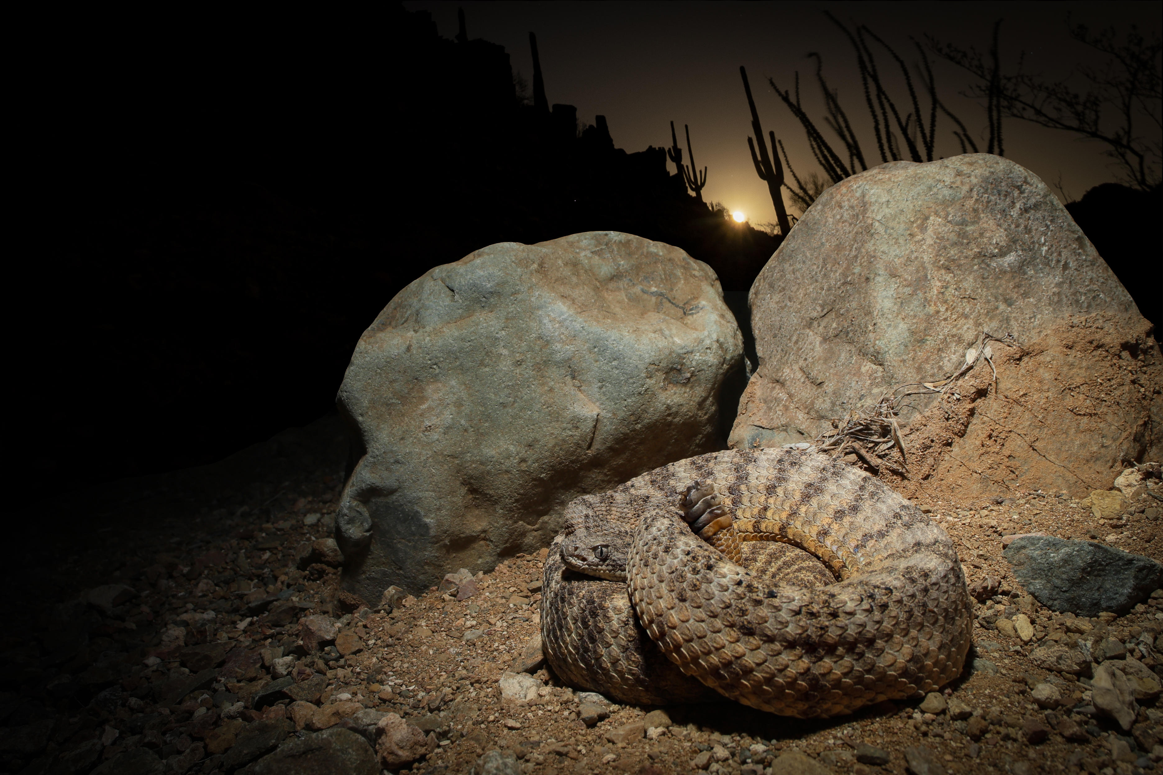 Among the six rattlesnake species found in the Phoenix Metropolitan Area, the tiger rattlesnake is the most toxic and most secretive. These reptiles love the rock outcrops on hillsides in the city.