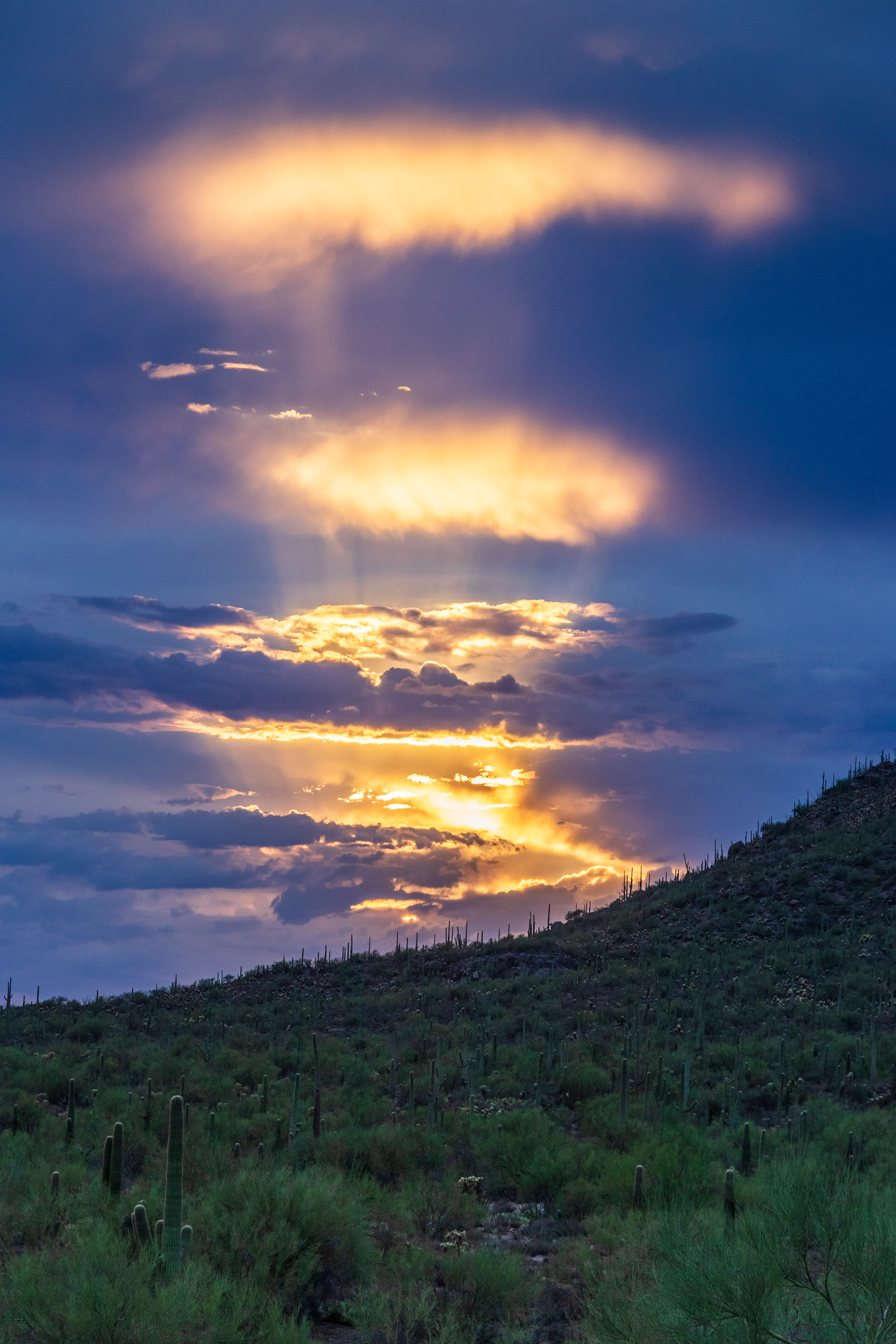 After a late afternoon monsoon thunderstorm I was rewarded yet again with this layer cake sunset over Tucson Mountain Park. Taken on 8/17/2023.