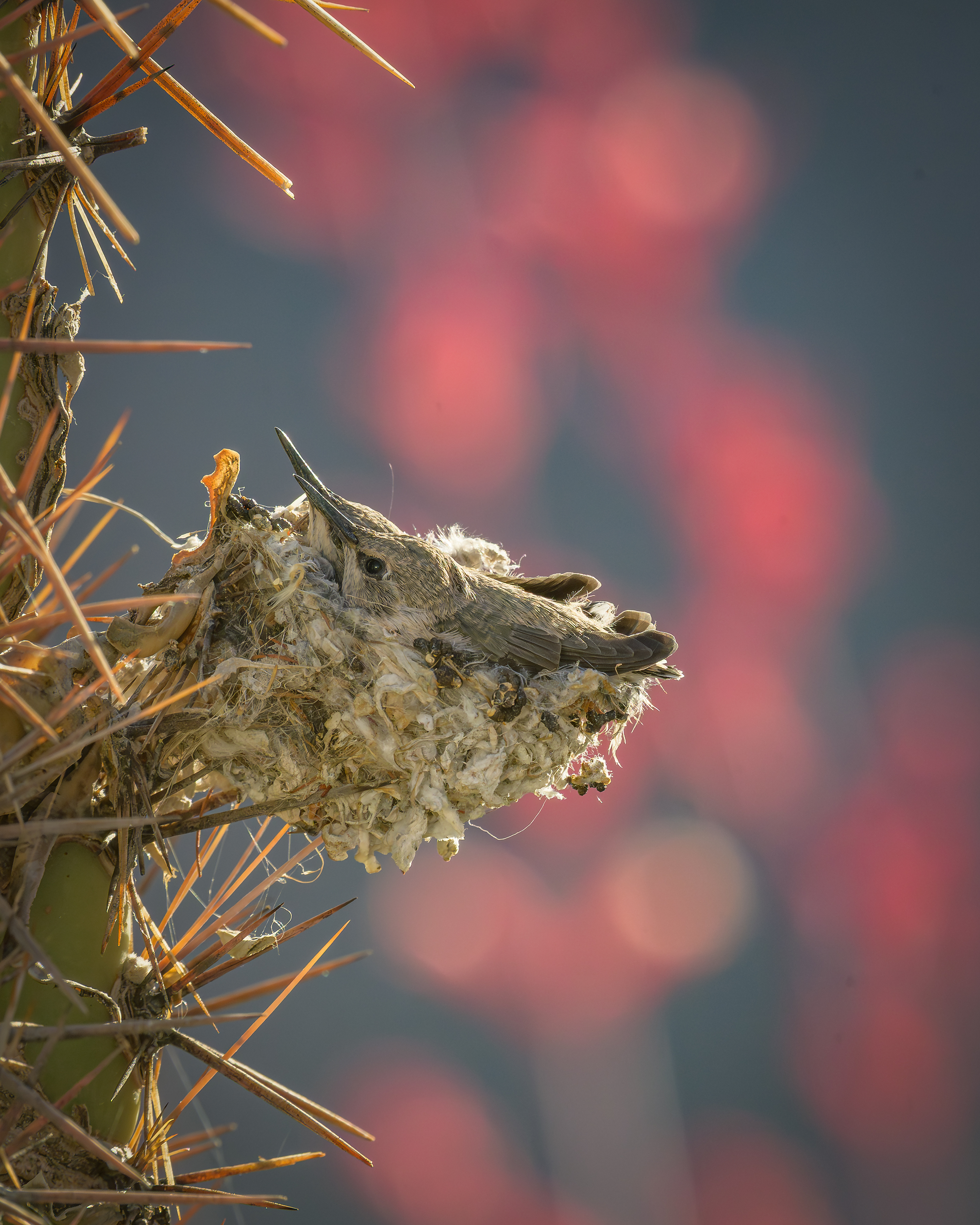 A unique hummingbird nest built on the side of a Saguaro cactus was successful in housing two hummingbirds into their adult stage of life.