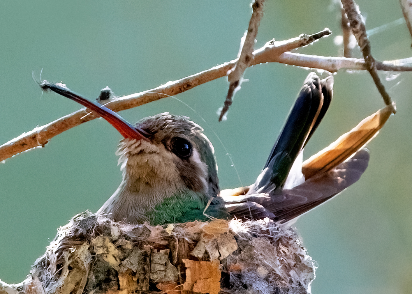 Broad-billed hummingbird in its nest.