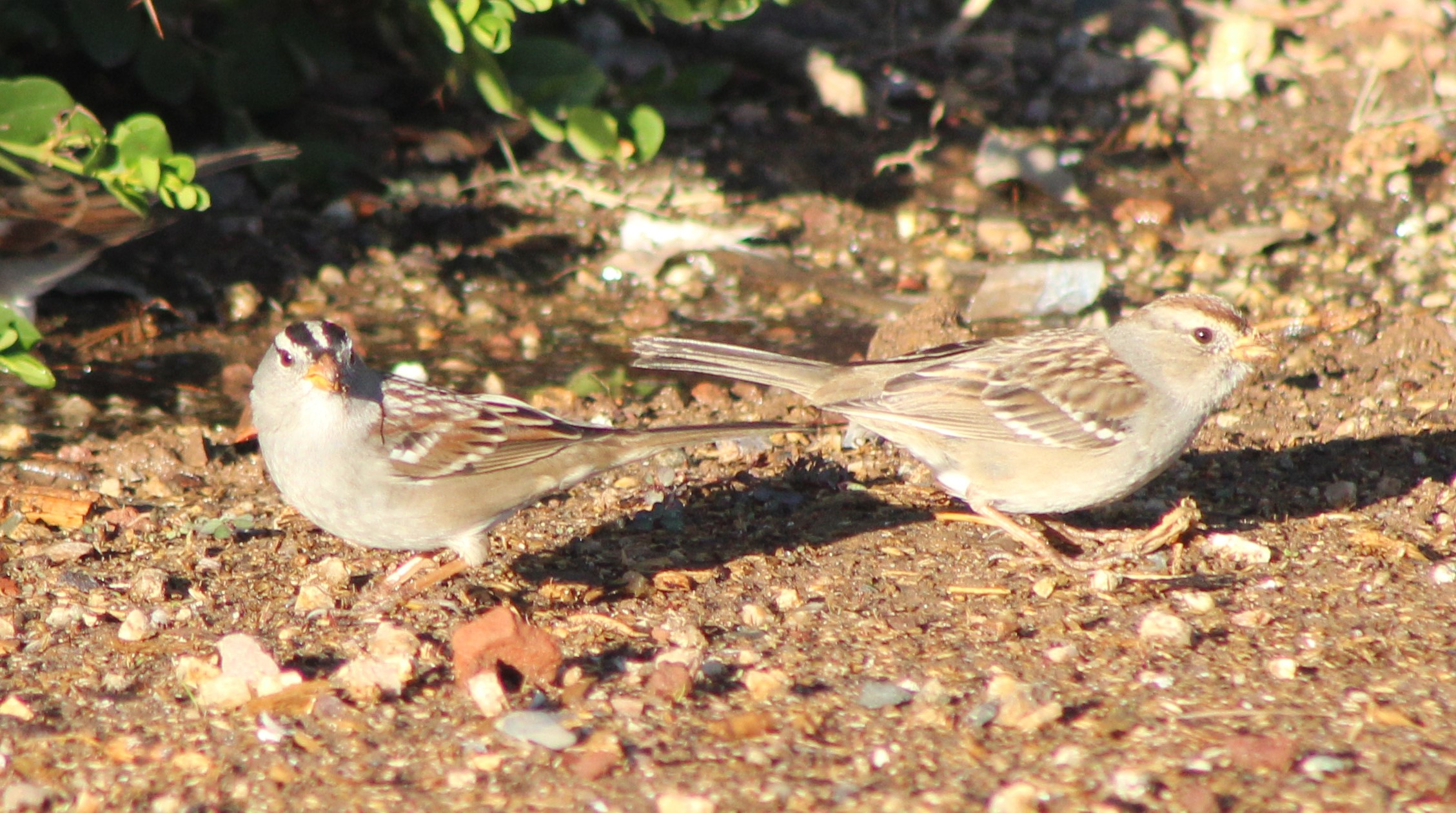 A pair of White Crowned Sparrows forage on the grounds of our apartment complex.