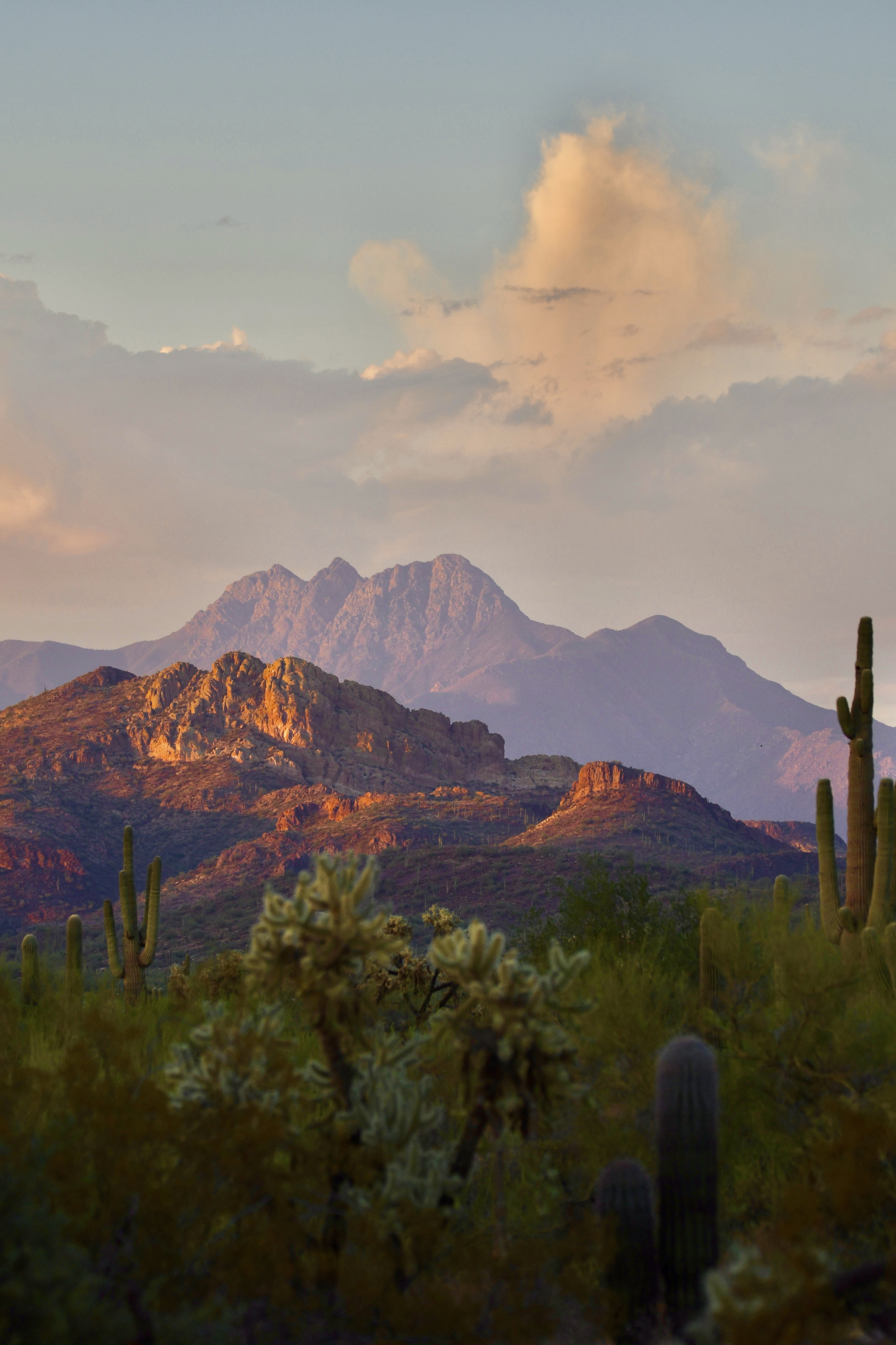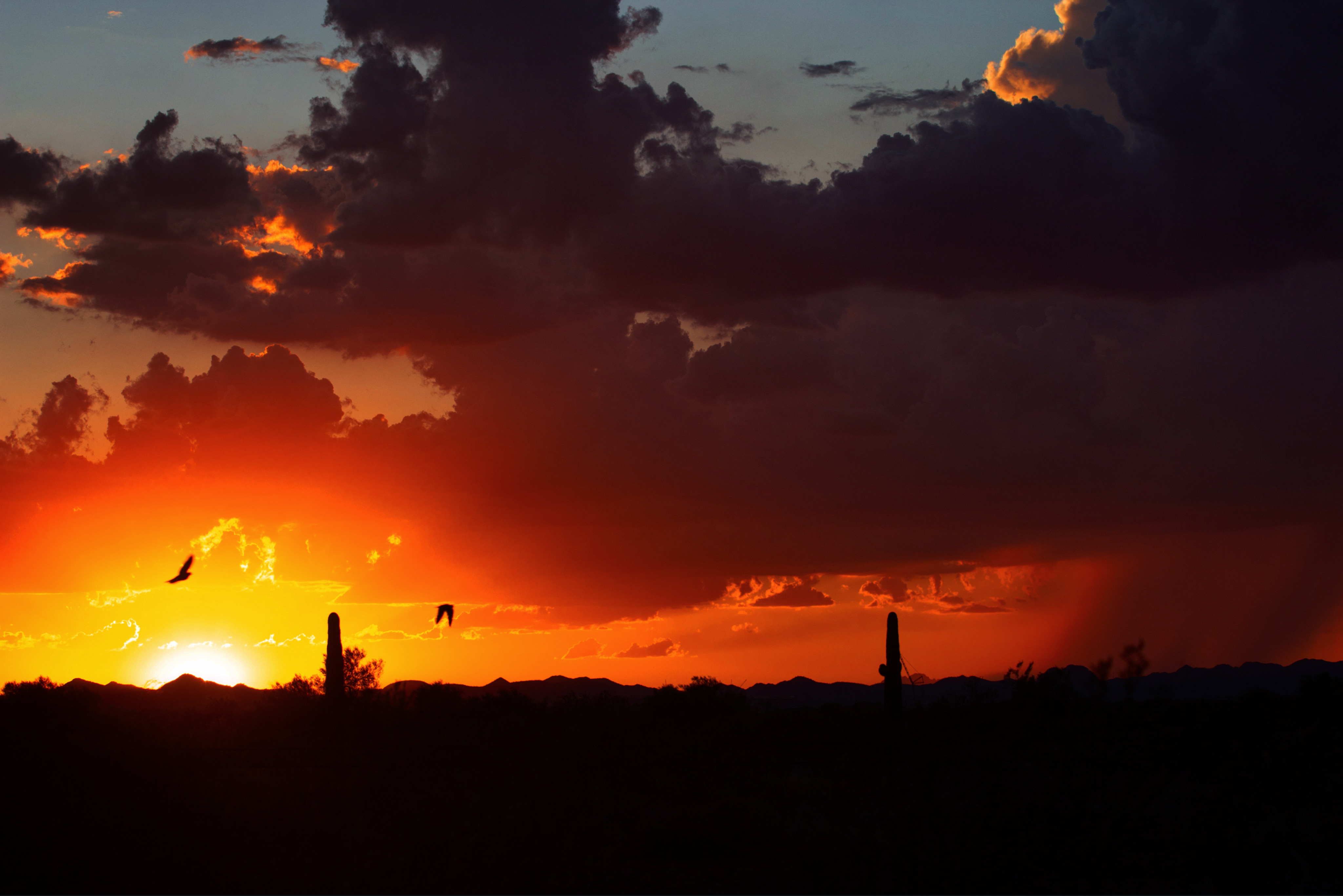 Sunset at Siphon Draw unveils a transect view of the Superstition, Goldfield, and Mazatzal mountain ranges.