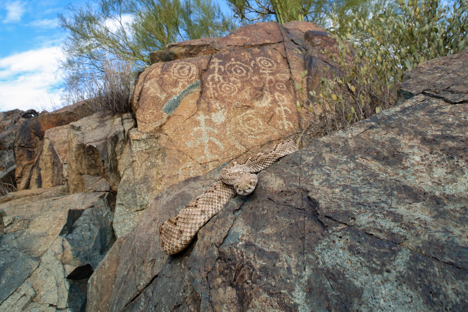 Phoenix has a long heritage of indigenous settlement from groups like the Sinagua. They depicted countless animals they lived alongside in petrogylph panels - including rattlesnakes.