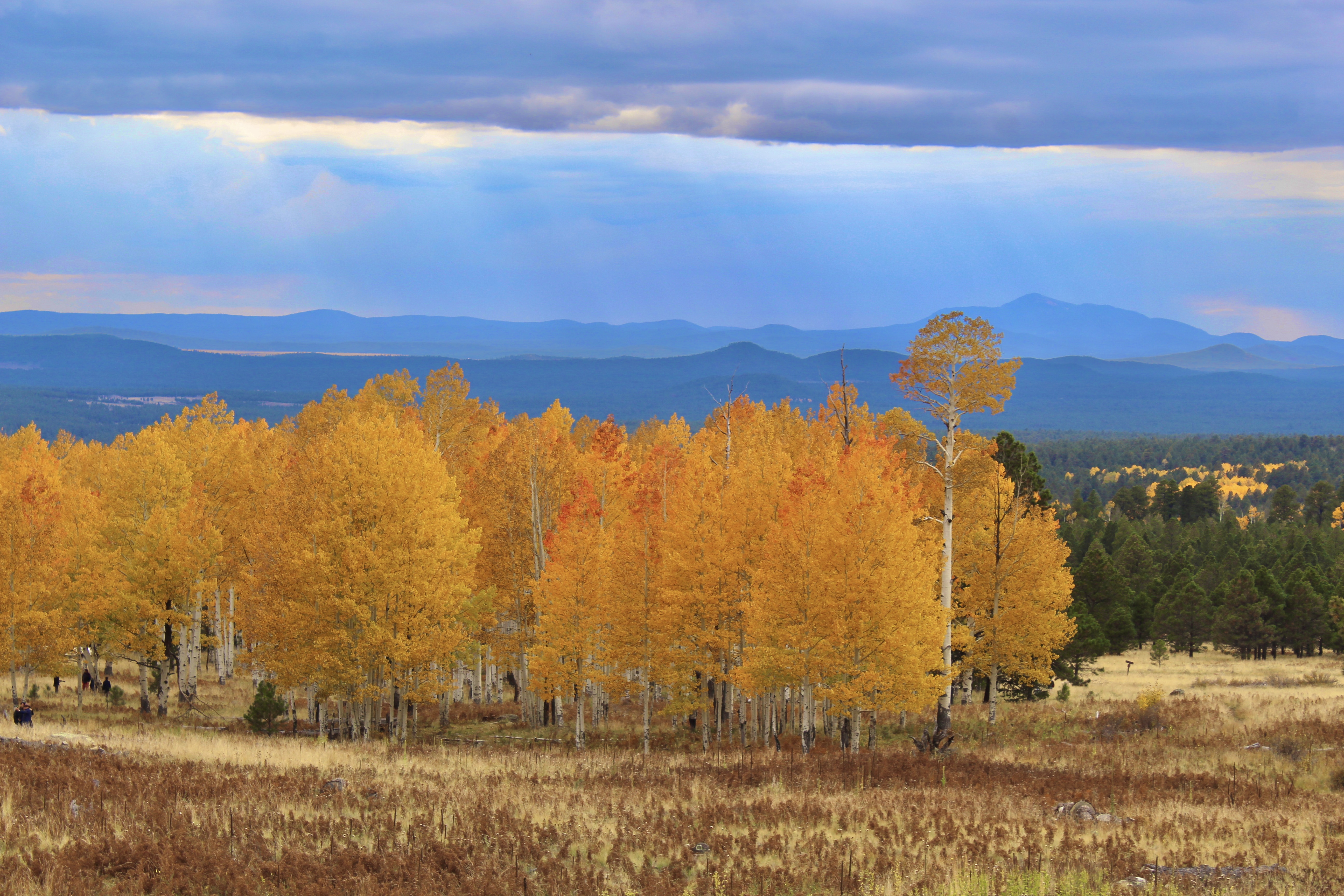 Flagstaff’s Aspen Corner glows gold after a storm.