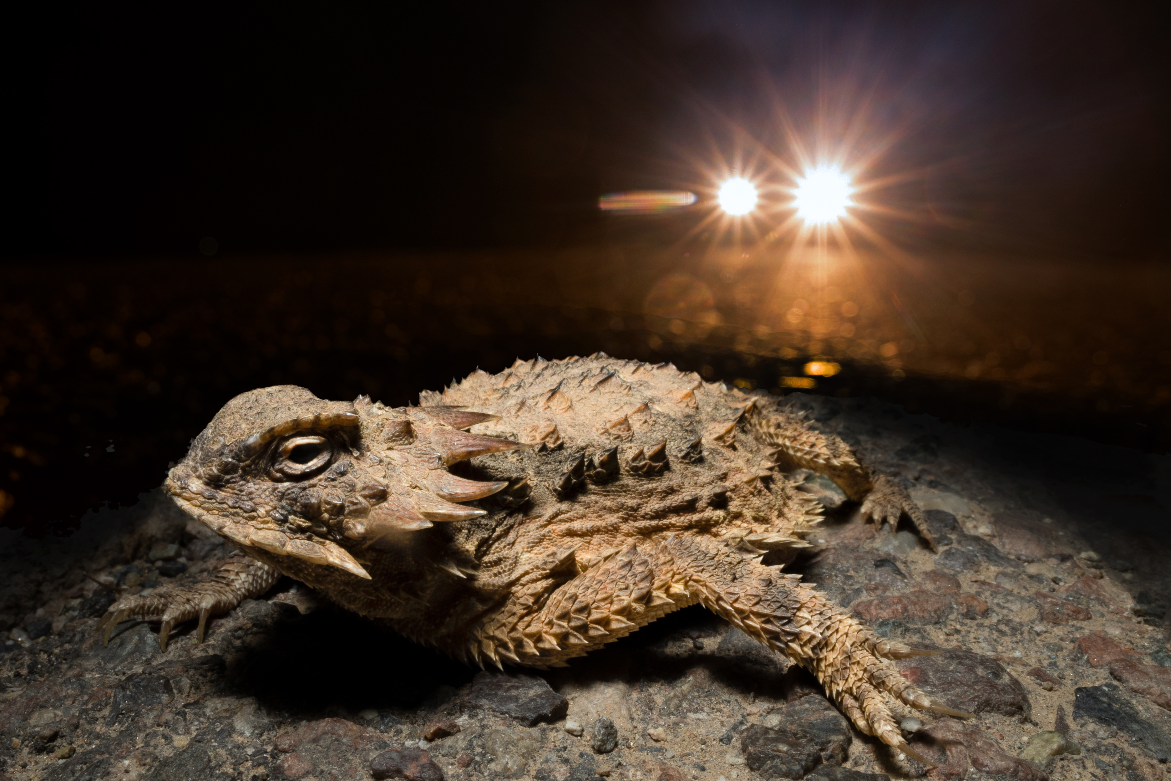 Regal horned lizards have seen considerable population reduction in Phoenix where once they were quite common. A key factor is the increase in road mortality as a result of new development.