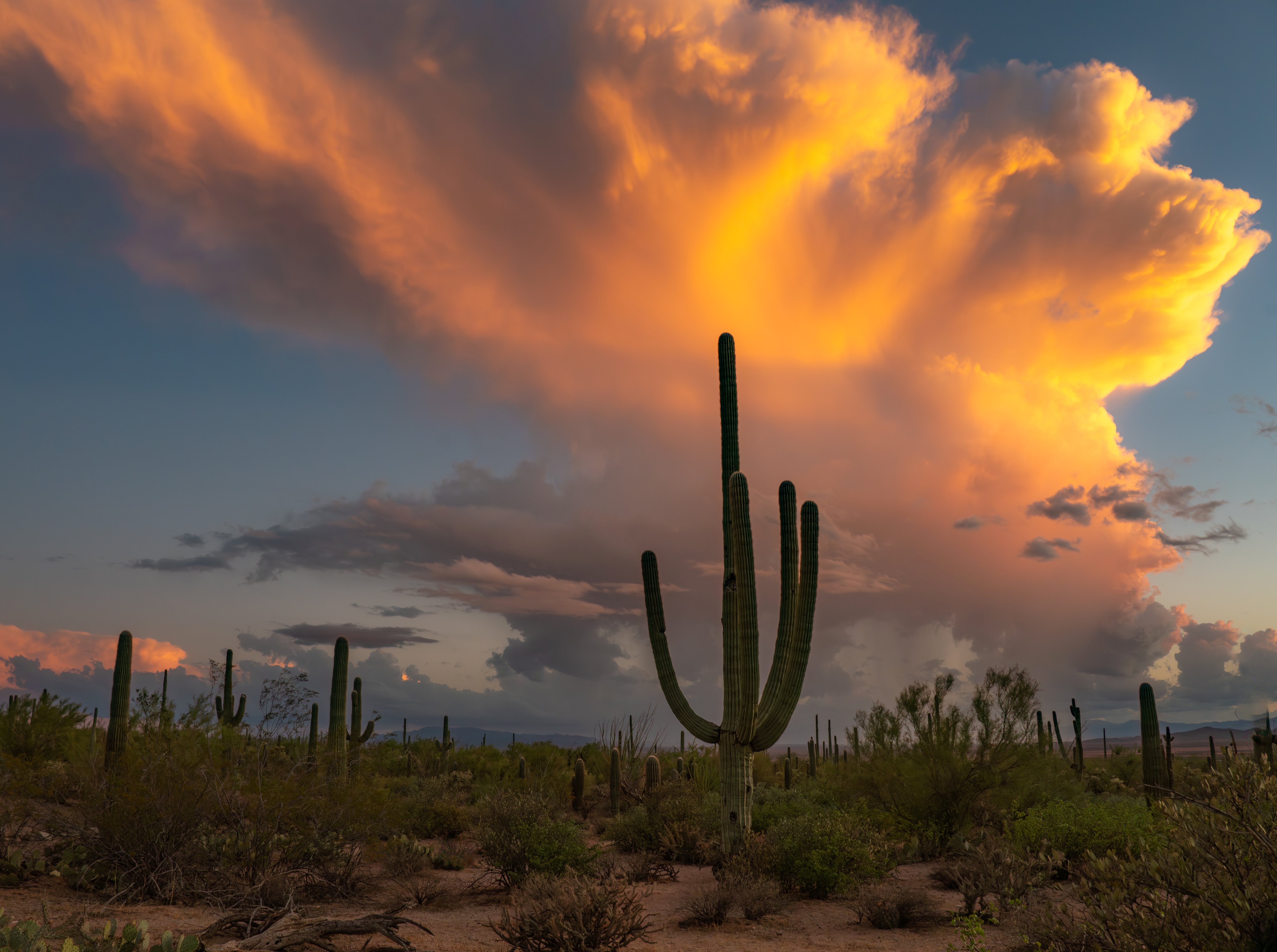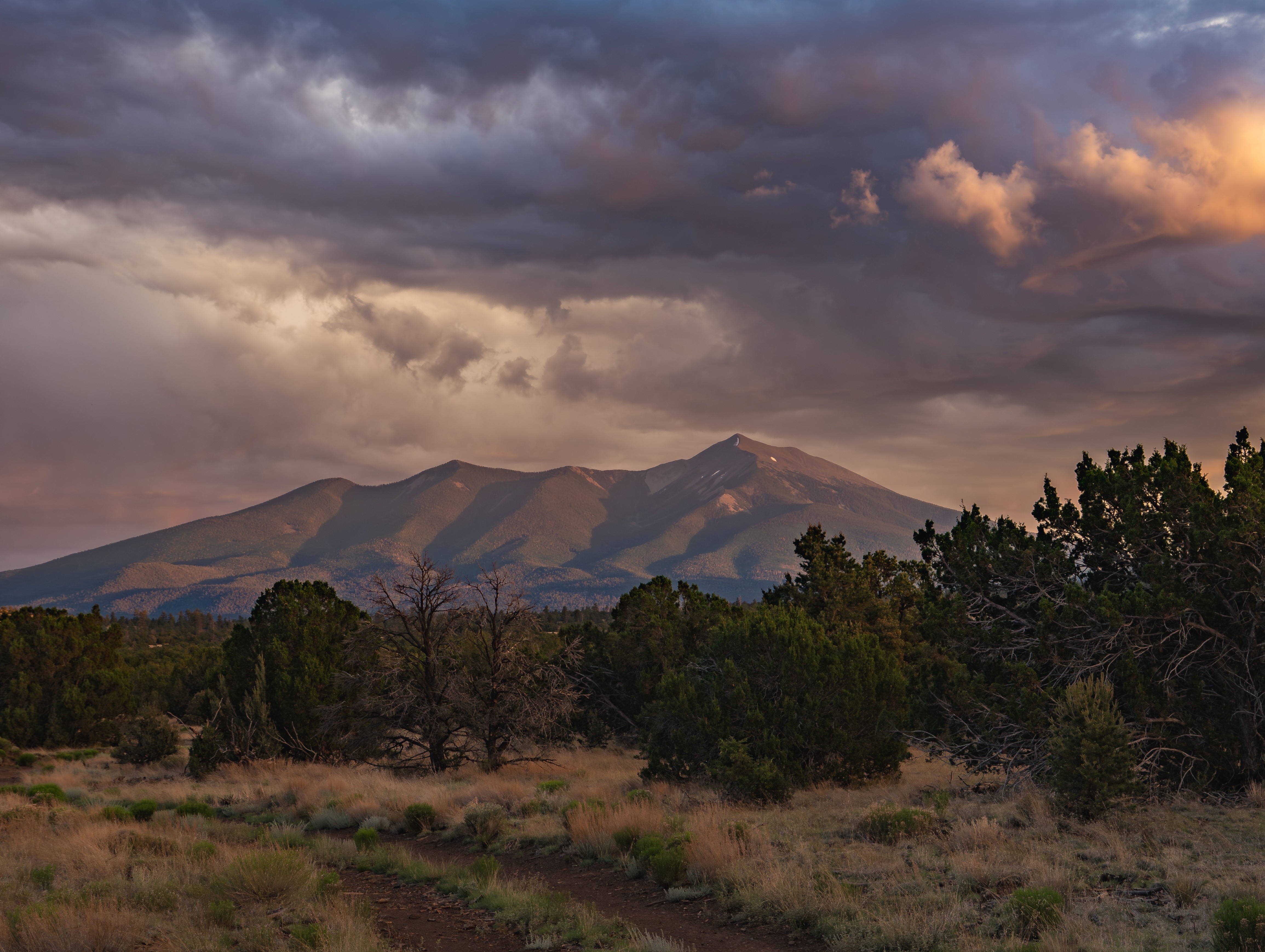 A sunset with monsoon clouds north of the San Francisco Peaks