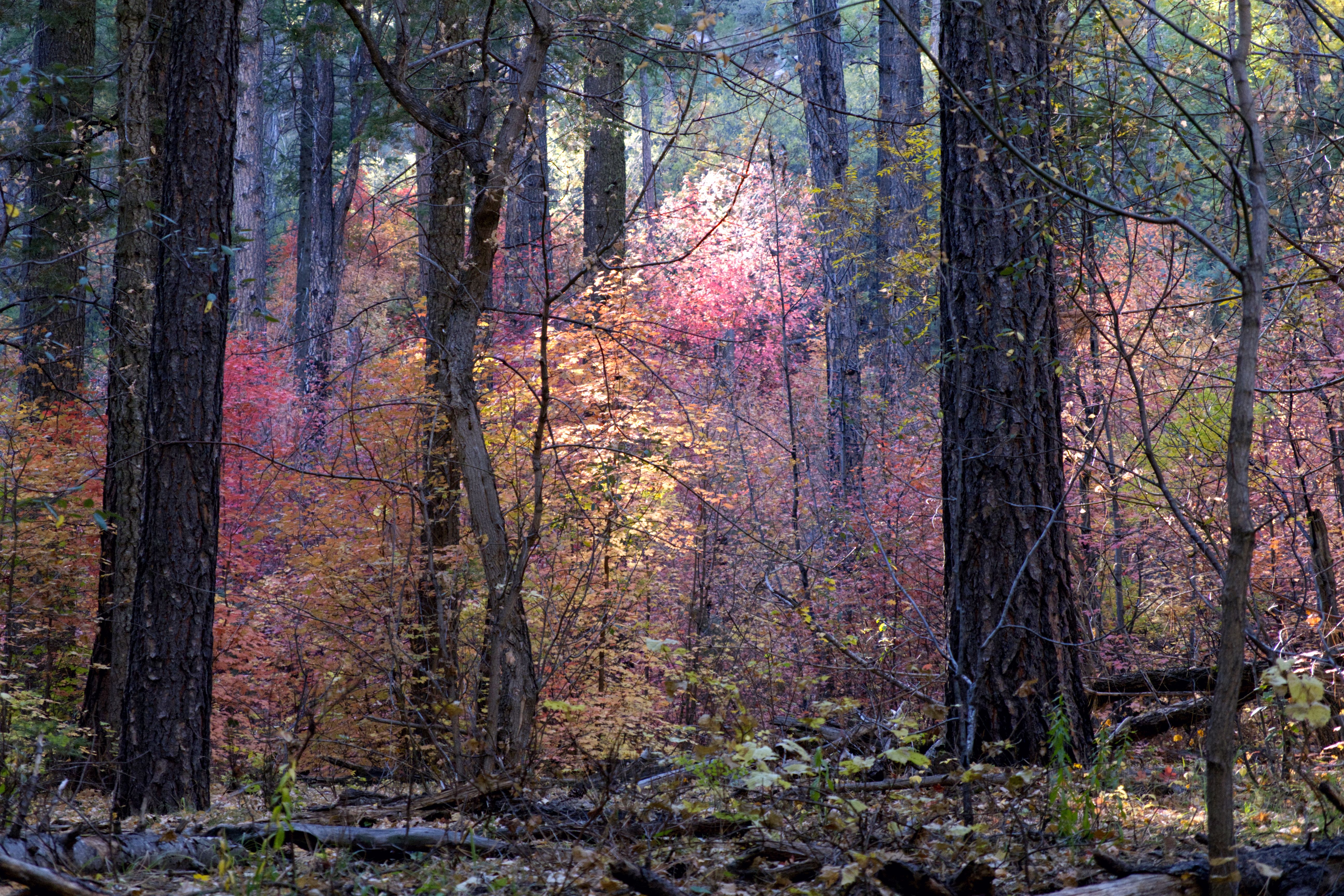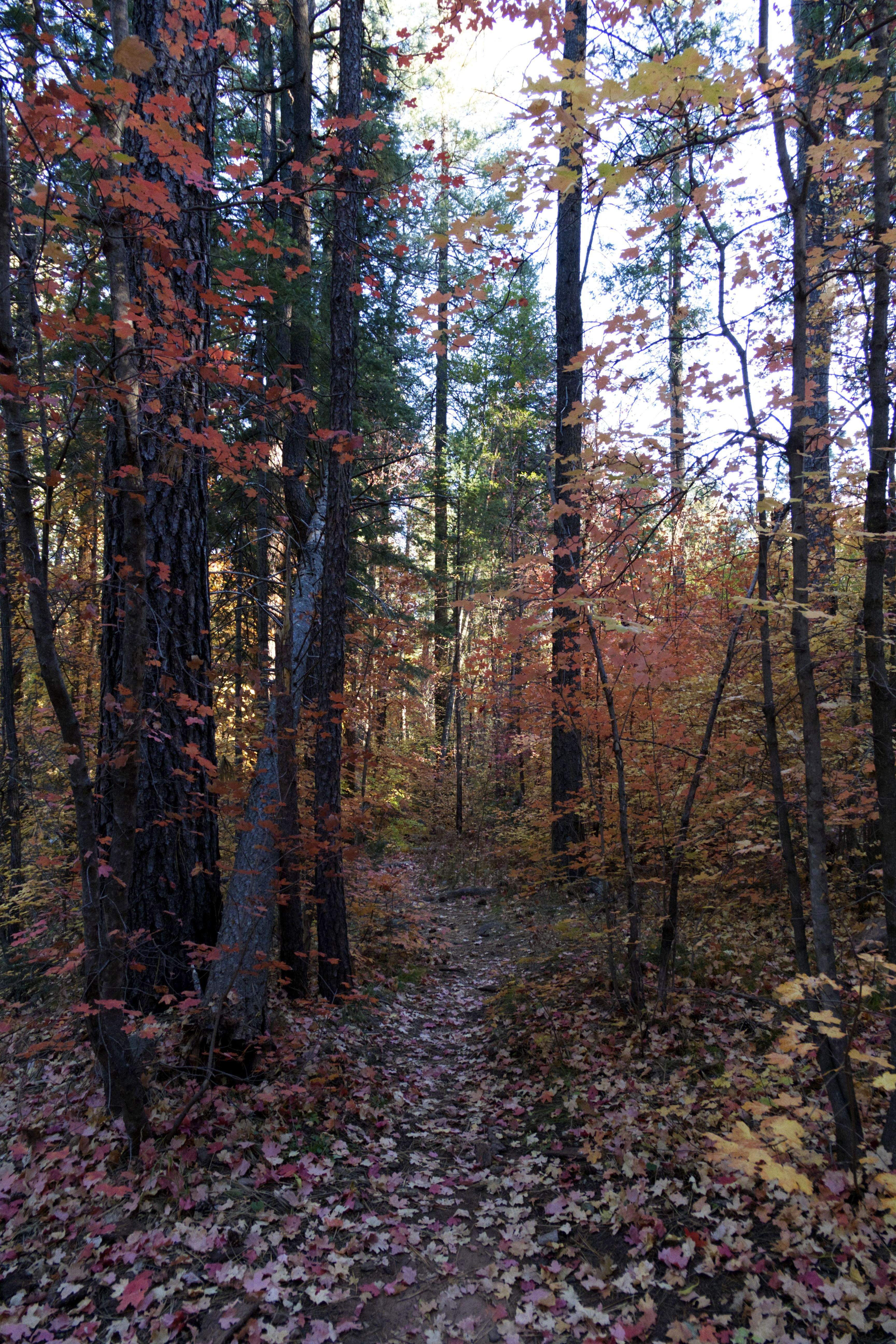 Red and golden fall leaves along the See Springs Trail near Christopher Creek Arizona