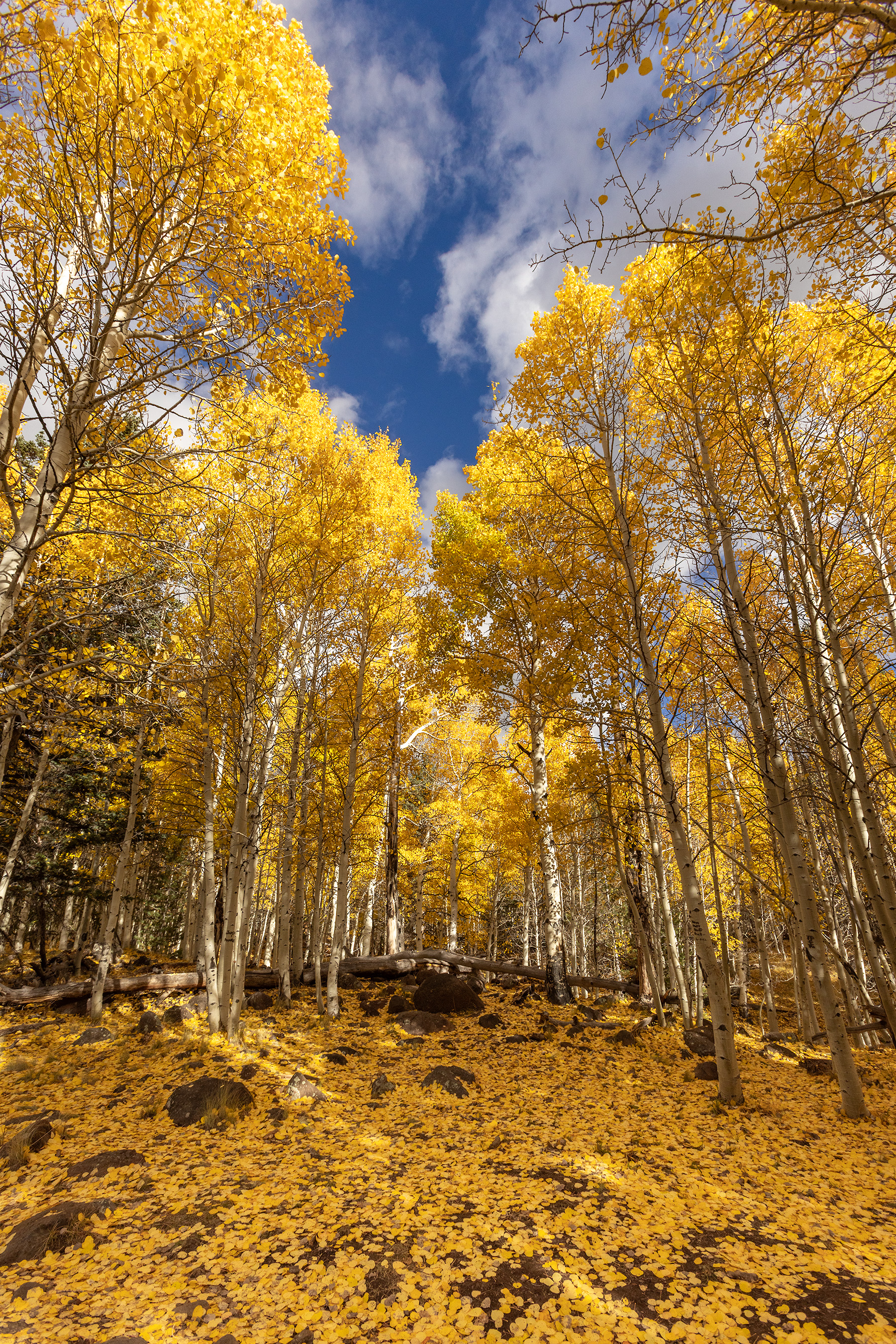 Aspens in full fall color near Snowbowl in Flagstaff during October 2025.