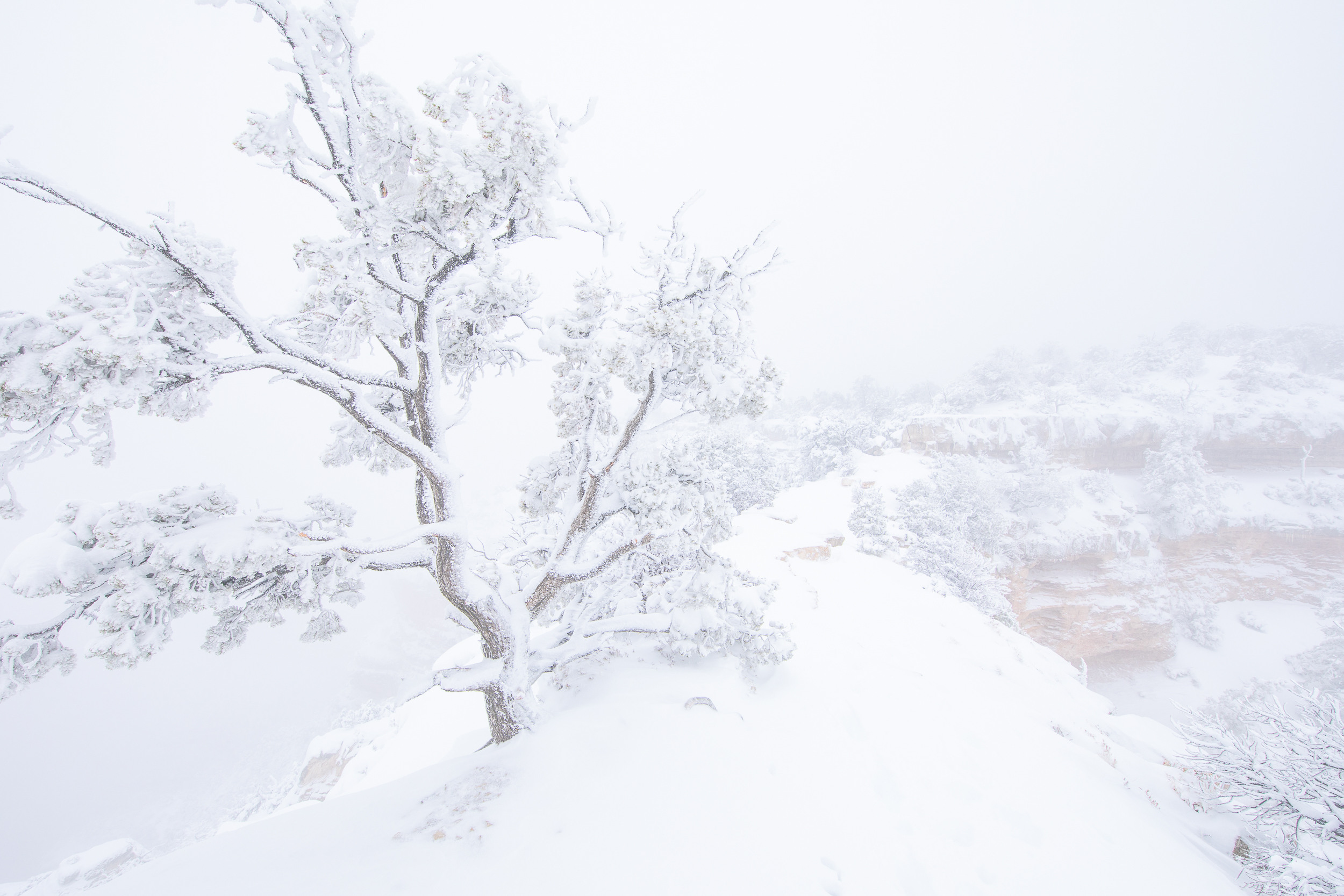 An early Winter blizzard envelopes Shoshone Point (Grand Canyon), coating everything in sight with a cold, thick, icy glaze.