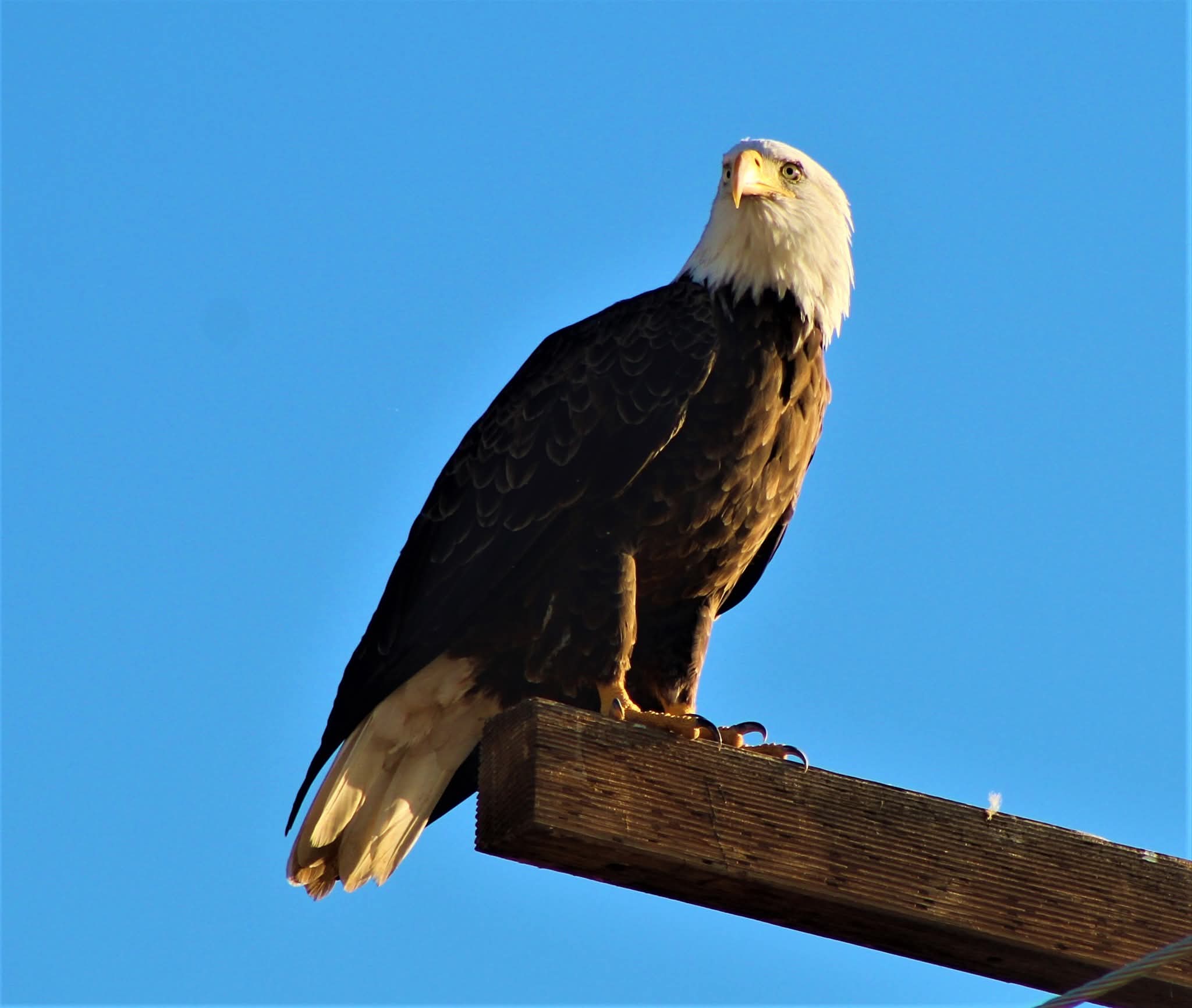 A Bald Eagle surveys the Glendale Recharge Ponds.