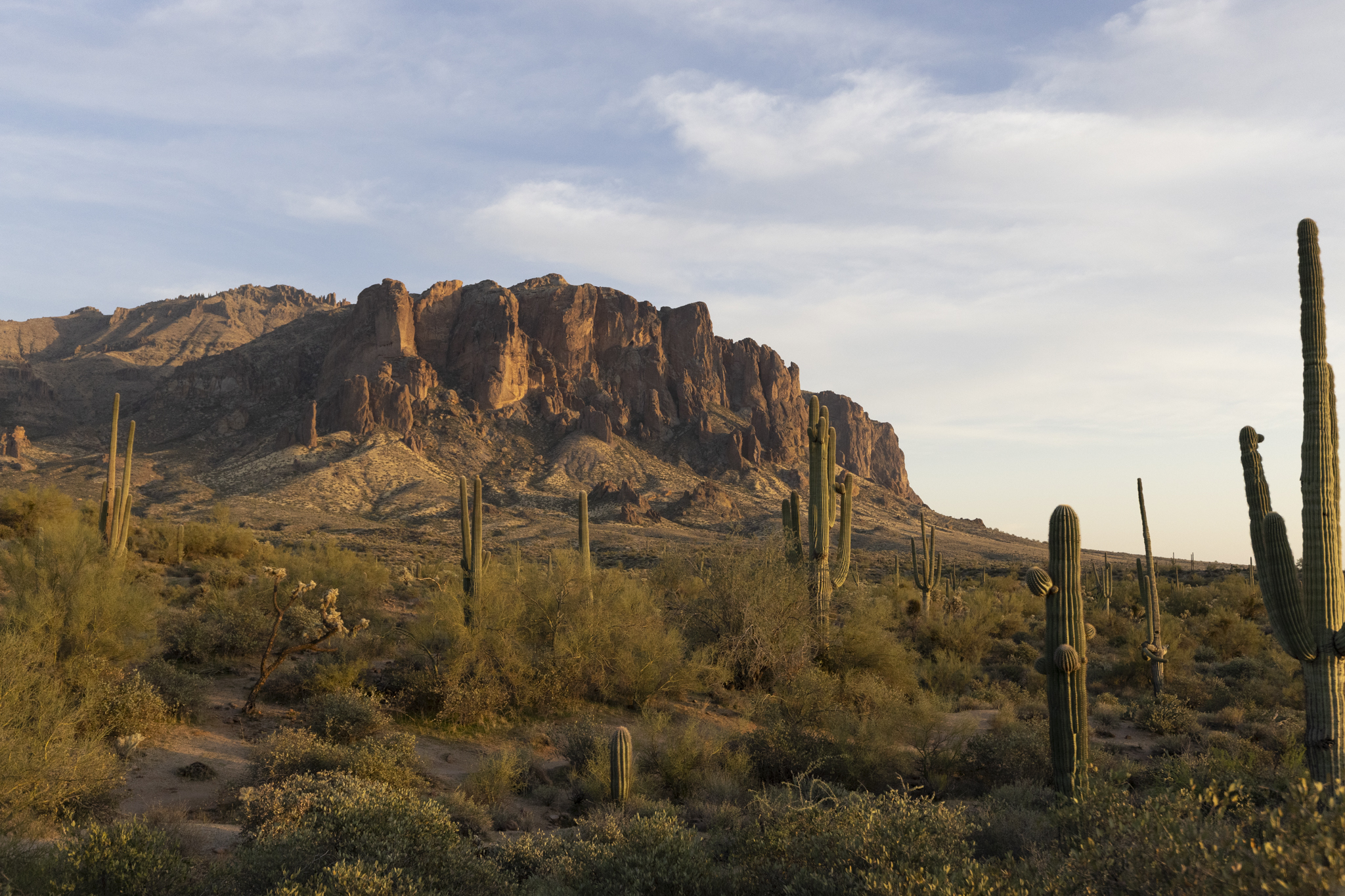 Evening glow on the cliffs of Lost Dutchman State Park / Tonto National Forest