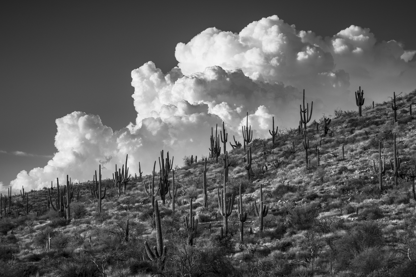 Thunderheads provide a picturesque backdrop for these lovely saguaros.