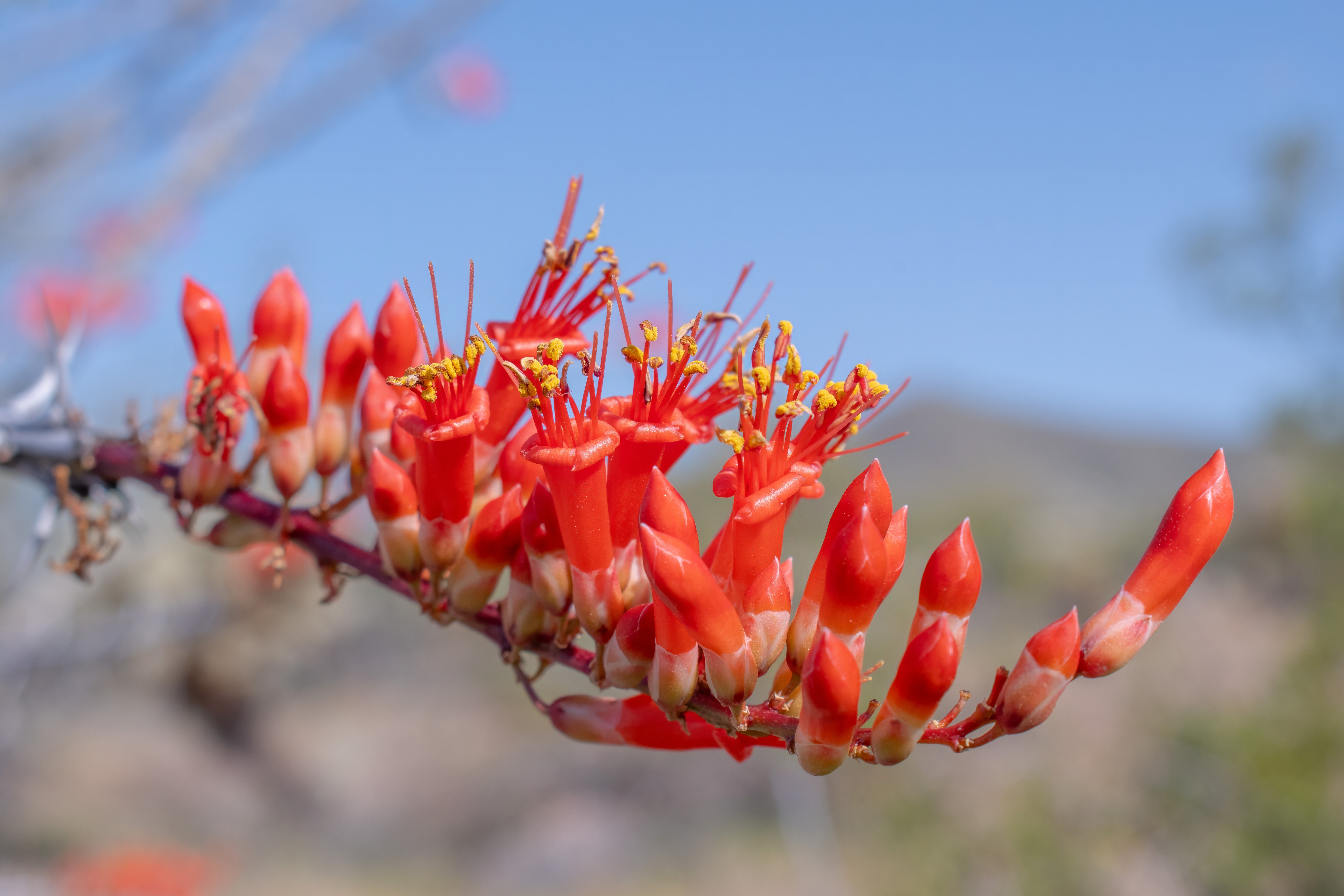 An Ocotillo Bloom adds vibrant color to the desert landscape