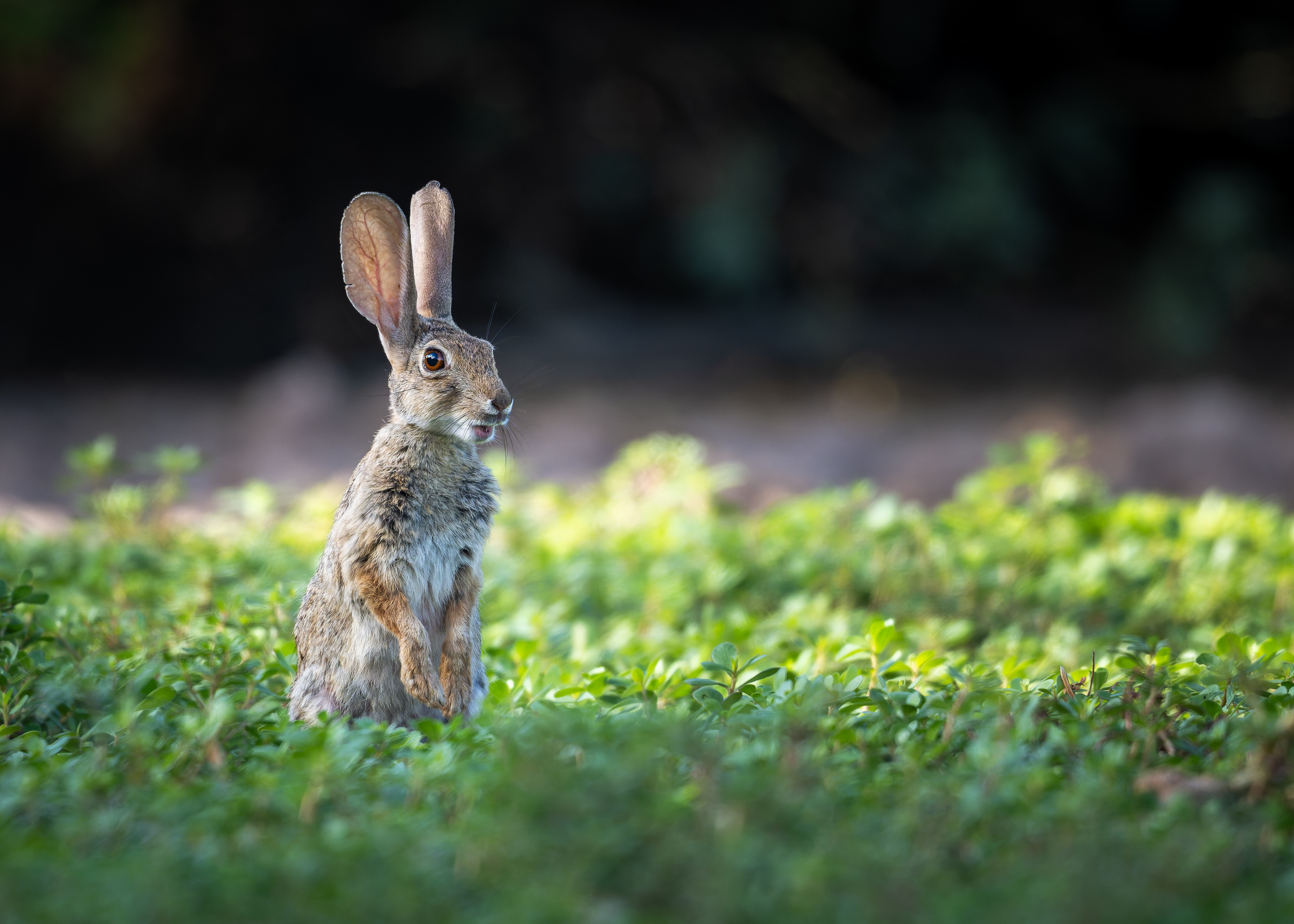Keeping watch over his garden, this Desert Cottontail struck the perfect pose.