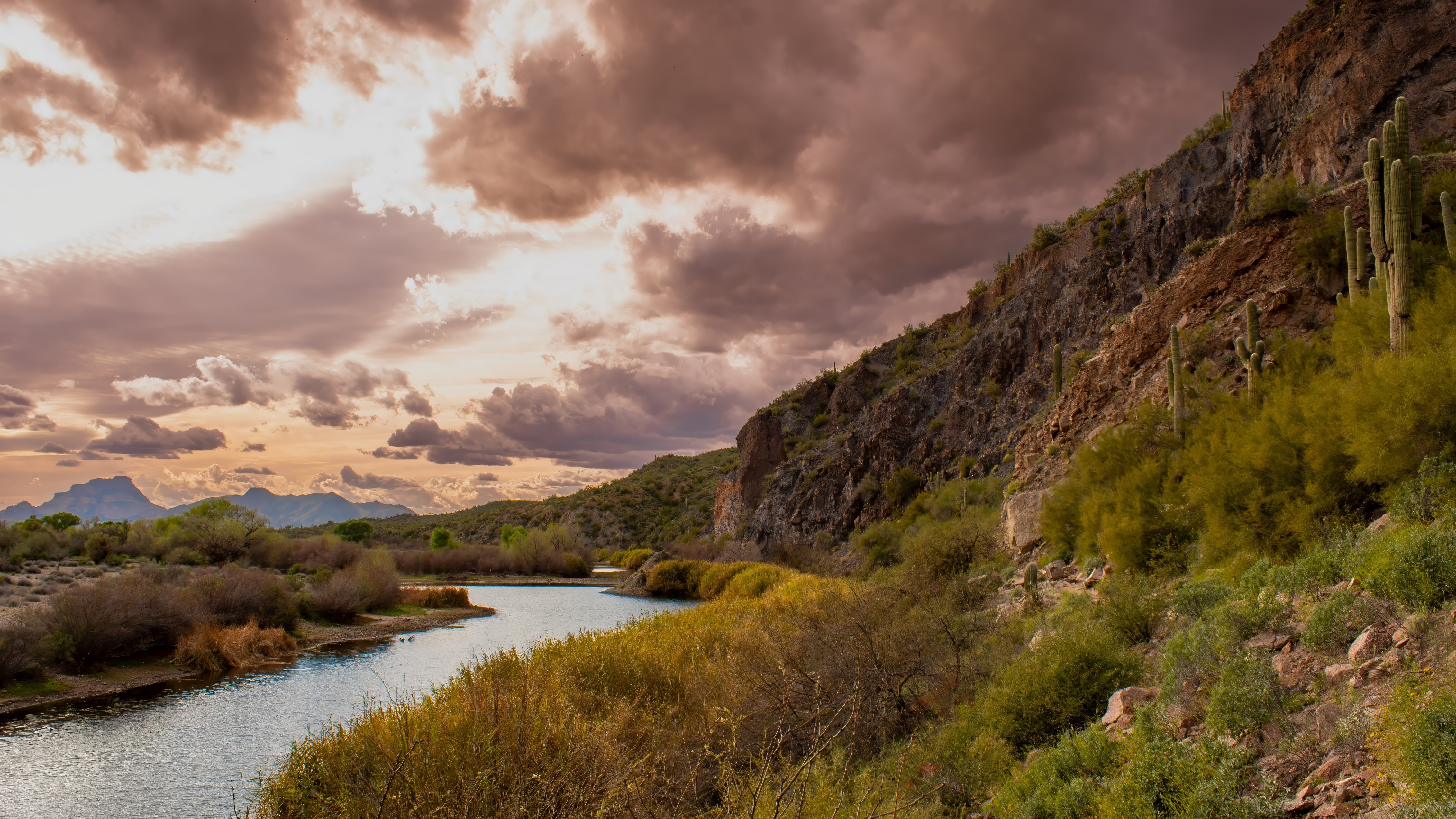 Storm clouds rolling in over the lower Salt River just east of Scottsdale in Tonto National Forest